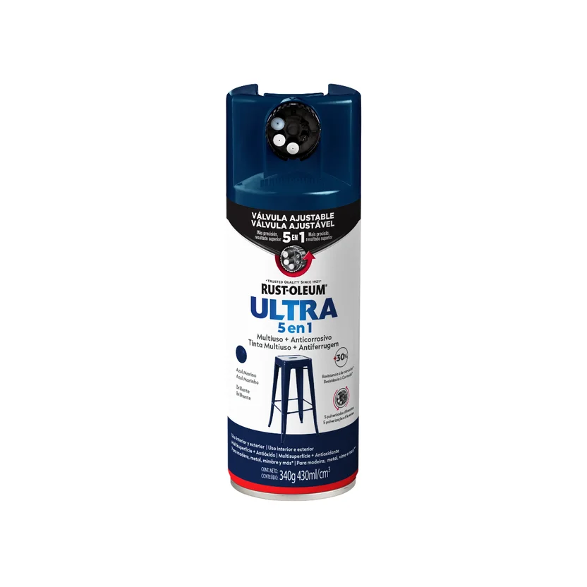 Dale un toque de estilo náutico a tus proyectos con la pintura en aerosol multiuso azul marino brillante Rust-Oleum Ultra 5 en 1. Con su práctico envase de 340 g, podrás renovar tus superficies de forma rápida y sencilla. Ideal para interiores y exteriores, esta pintura te ofrece un acabado brillante y duradero que resistirá el paso del tiempo.