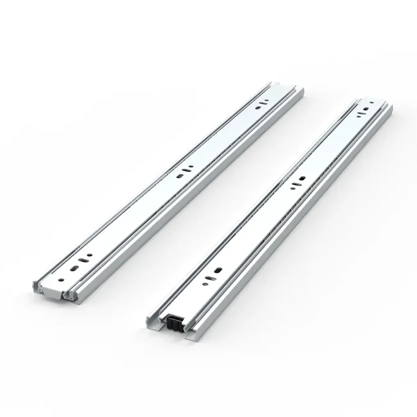 Estas guías telescópicas, fabricadas en metal galvanizado, tienen un ancho de 45 mm y un espesor de 1.0 x 1.0 x 1.2 mm. Son ideales para tus proyectos de carpintería. Su origen es China.