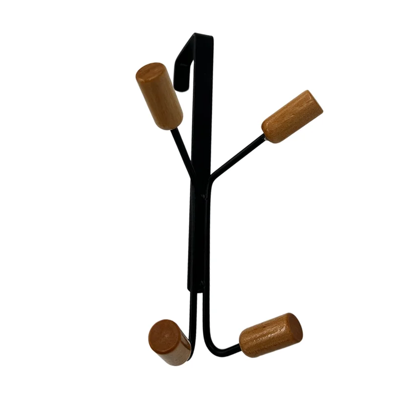 Perchero de puerta de metal y madera 4 ganchos