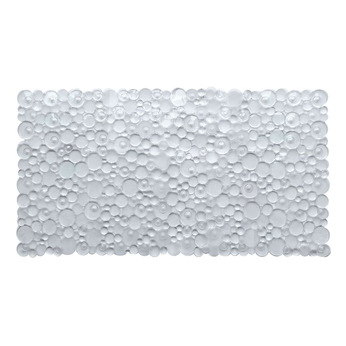 Esta alfombra de baño antideslizante, fabricada en PVC, es ideal para usar dentro de la bañera. Su diseño rectangular y transparente se adapta a cualquier estilo de baño. Cuenta con ventosas para asegurar su fijación y tiene una altura de pelo de 1 mm. Además, su tamaño es de 77 x 39 cm.
