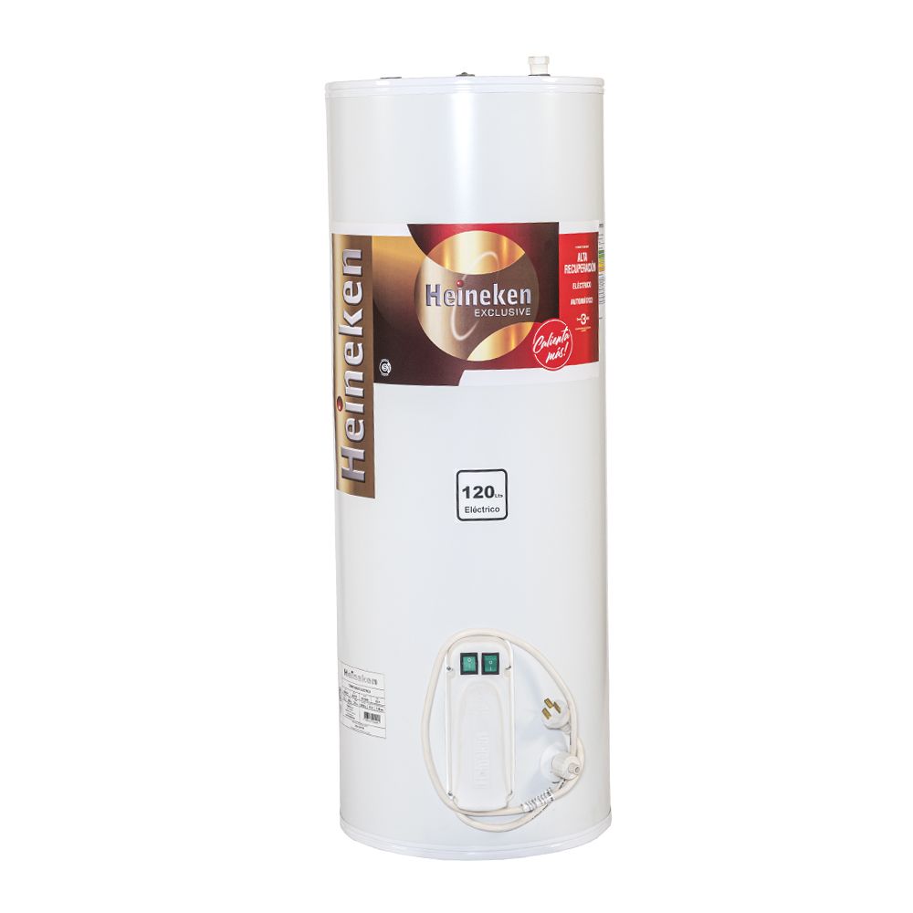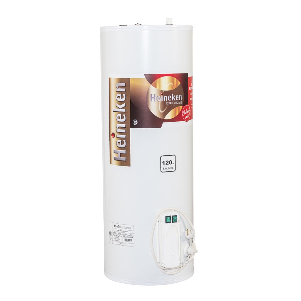 Este termotanque eléctrico Heineken, modelo AR-E120, cuenta con encendido manual y una eficiencia energética C. Sus dimensiones son de 41.5 cm de ancho y 117 cm de alto. Fabricado en Argentina con material de chapa, ofrece una recuperación de 130 lts/h y una potencia de 1500/3000 w. Es ideal para 1 ducha (4/5 personas).