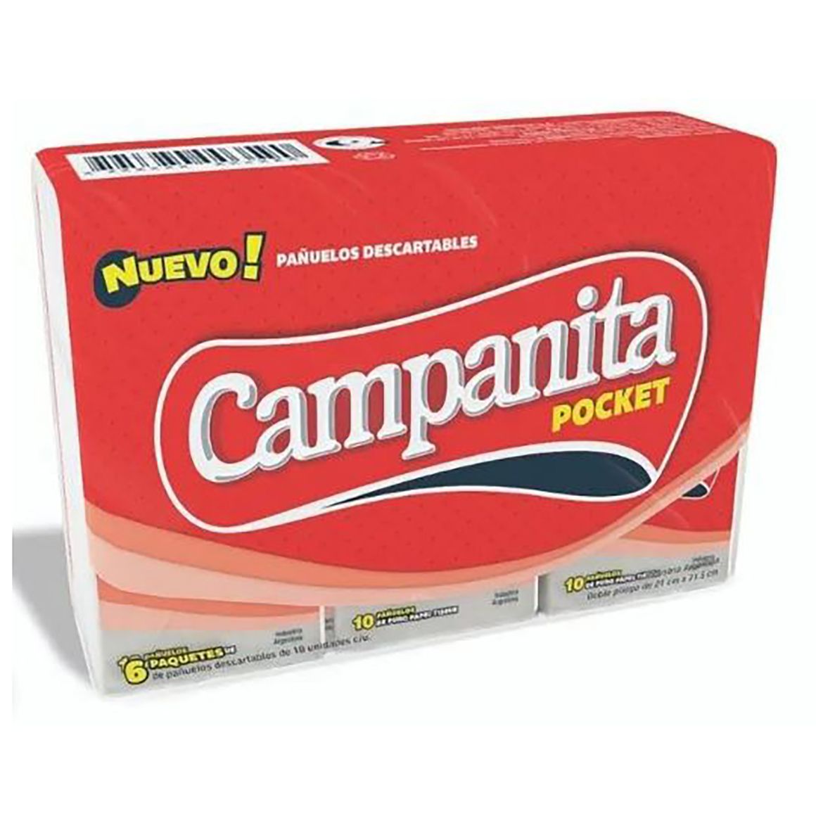 ¡Olvídate de los resfriados con el Pack de 6 paquetes de pañuelos descartables Campanita! Cada paquete contiene 10 pañuelos, perfectos para tener siempre a mano. ¡Son ideales para llevar en tu bolso o tener en casa!