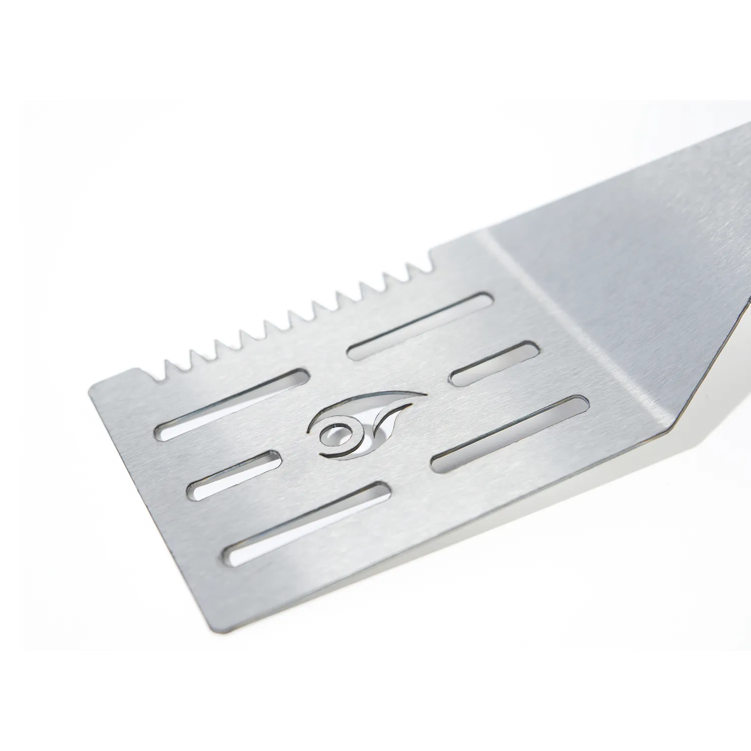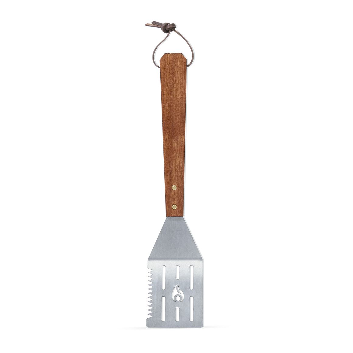 Esta espátula cuenta con un ancho de 8 cm y una altura de 43 cm, ideal para manipular tus alimentos con facilidad. Su material de acero inoxidable asegura resistencia y durabilidad, mientras que su diseño incluye un dentado para corte y una correa de cuero para colgarla cómodamente. El modelo Gourmet de Tromen es el accesorio que te permitirá lucirte como un verdadero maestro parrillero.