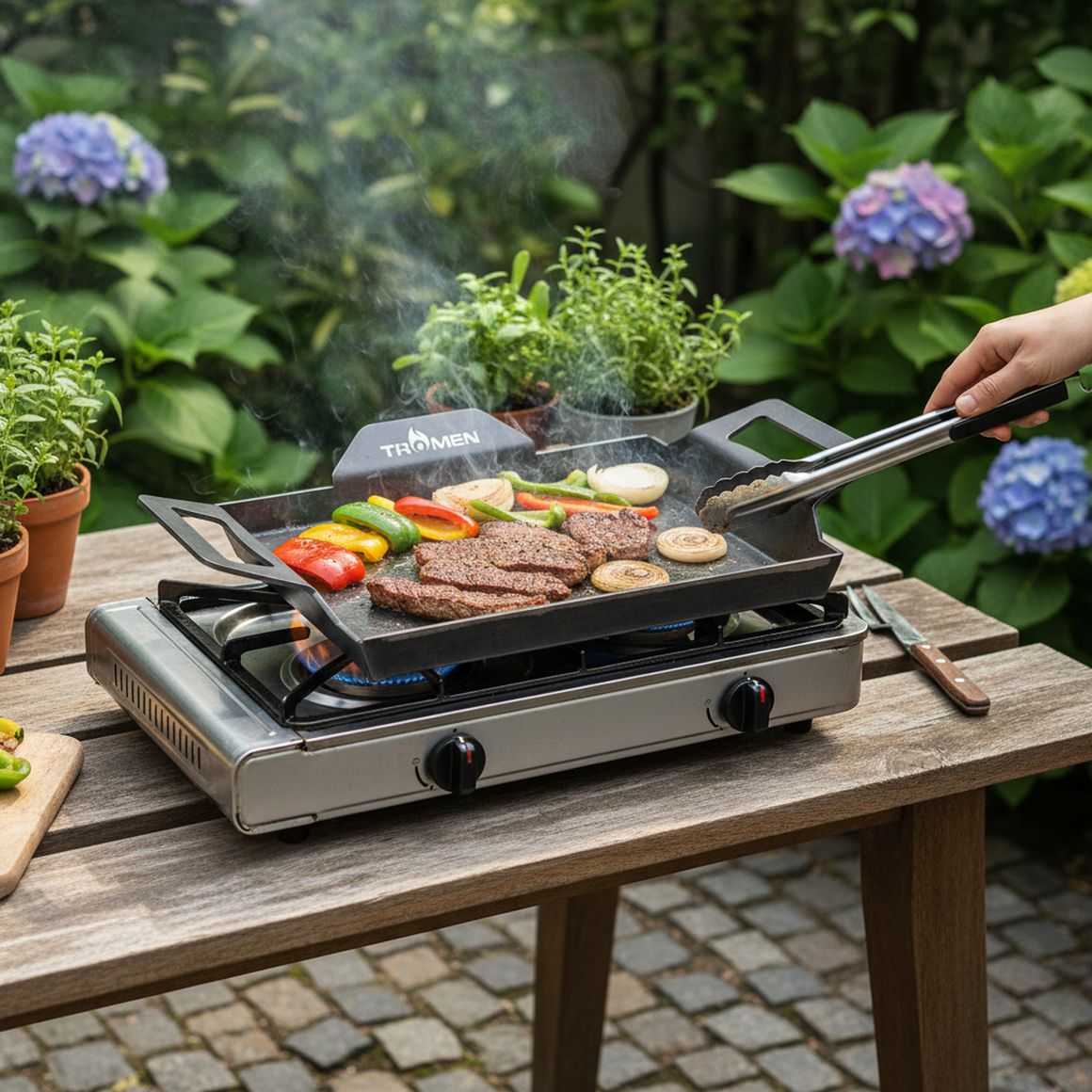 Esta plancha Tromen, con sus 21 cm de ancho y 27 cm de largo, está fabricada en chapa de 3.2 mm, lo que asegura una excelente distribución del calor. Sus dimensiones la hacen ideal para cualquier espacio. Además, su tapa de acero inoxidable y empuñadura de madera le dan un toque de elegancia y funcionalidad.