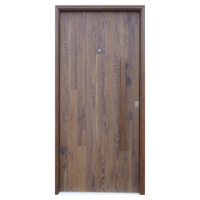 Acero electrozincado. Máxima resistencia estructural y protección anticorrosiva. Triple contacto antibarreta. Sistema perimetral de seguridad reforzada. Burlete perimetral completo. Hermeticidad y aislamiento termoacústico. Cilindro europerfil. Seguridad premium y mejor compatibilidad. Hoja de 48 mm de espesor. Solidez y mayor confort térmico y acústico. Durabilidad comprobada 1200 hs de niebla salina. Apta para exteriores y exposición climática. Acero con acabado símil madera. Realismo visual con alta resistencia al agua y rayos UV