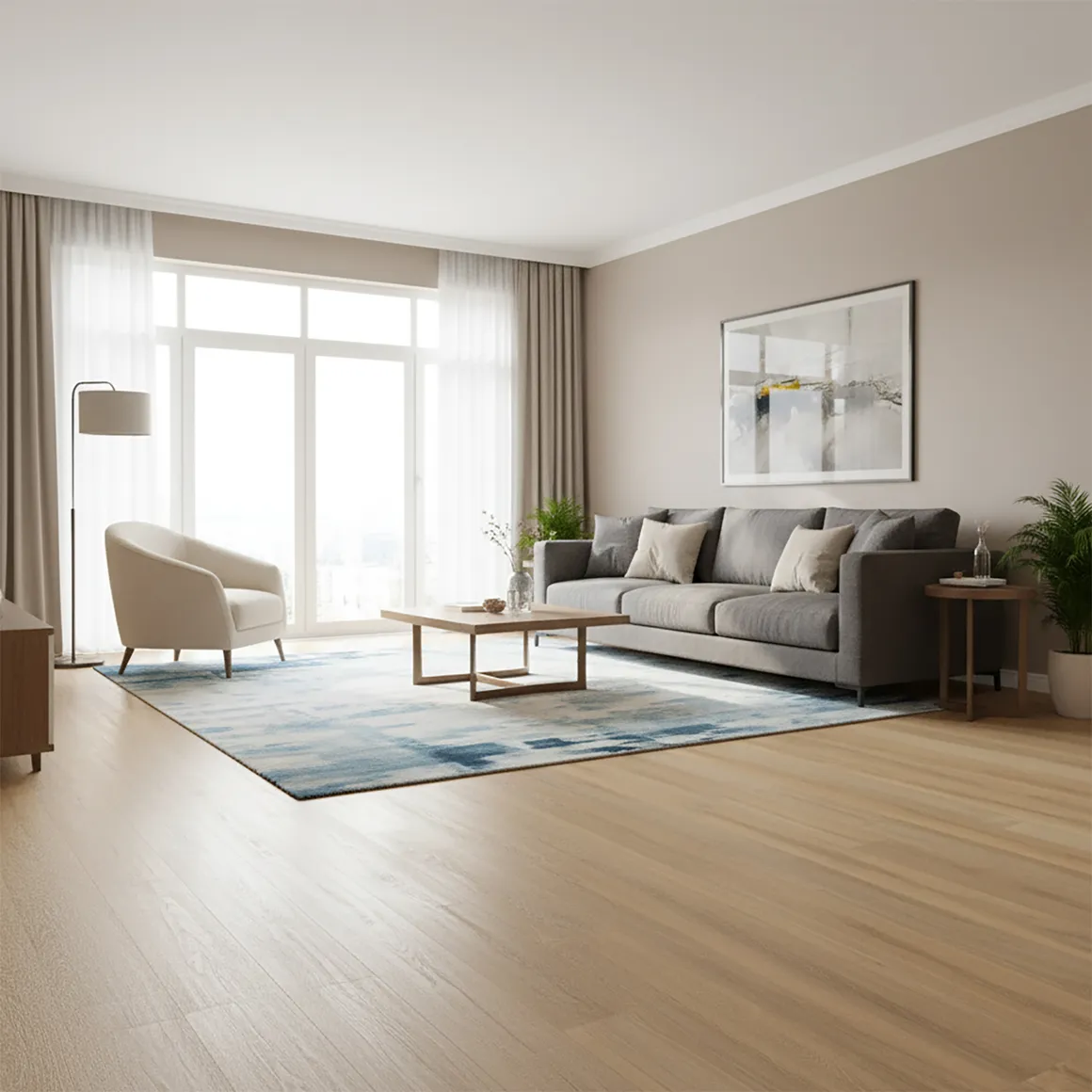 Este porcelanato cuenta con un esmaltado que le da un acabado satinado y una textura de superficie lisa. Su diseño de madera se complementa con un relieve sutil que realza vetas y texturas. Con un espesor de 7 mm, es resistente al desgaste (PEI IV) y a rayaduras. Además, es compatible con suelo radiante y su instalación es mediante sistema pegado.