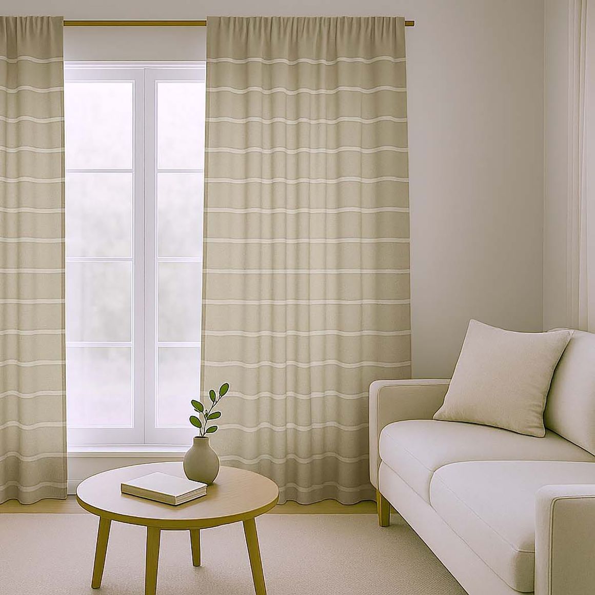 Dale un toque de calidez y estilo a tu hogar con este pack de cortinas de tela natural y marrón. Con su diseño de fondo natural con rayas, estas cortinas son perfectas para darle un toque de elegancia a tu living o dormitorio.