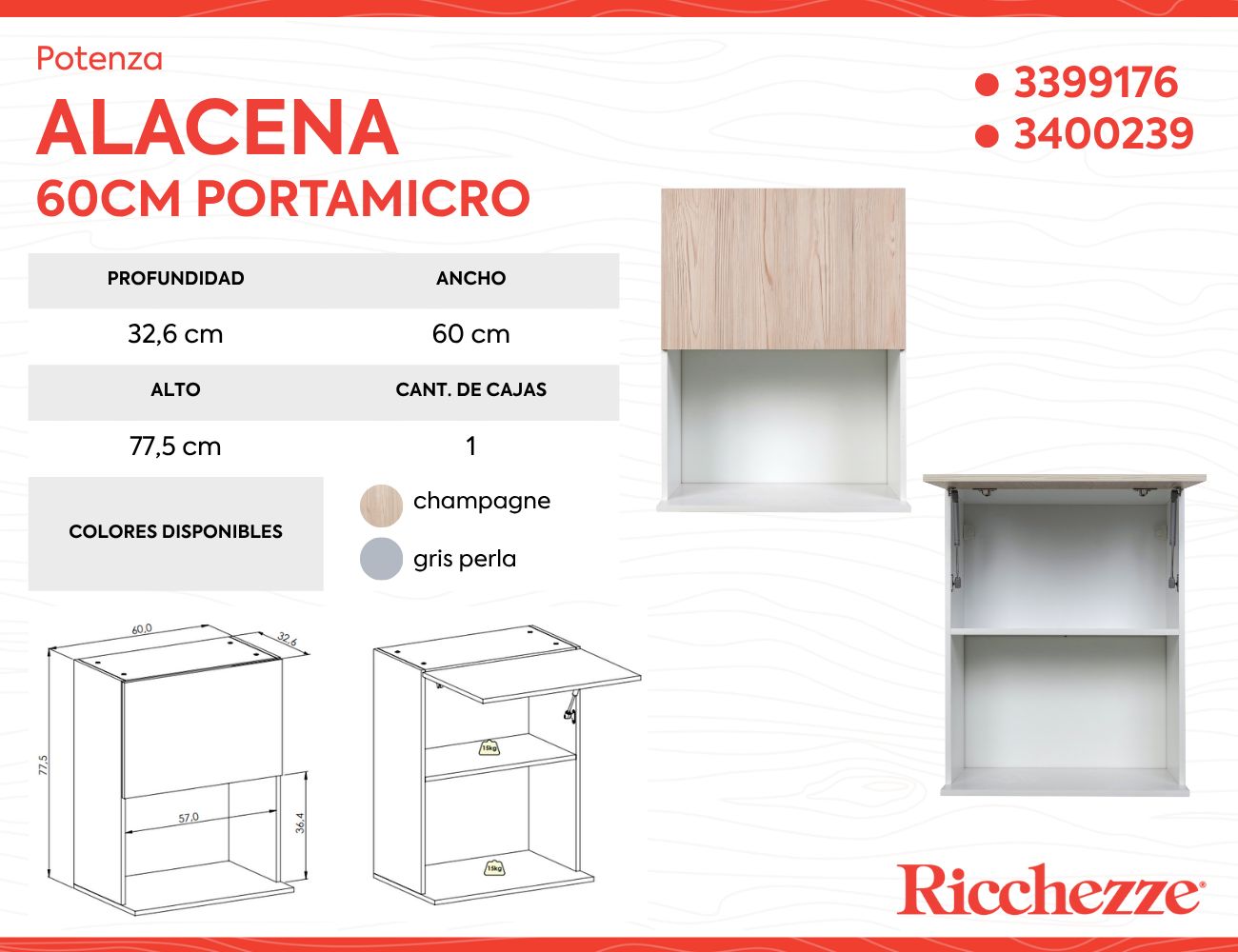 Esta alacena Ricchezze cuenta con una estructura de melamina y puertas de 15 mm de espesor, garantizando durabilidad y resistencia. Incluye repisas para organizar tus utensilios y alimentos, y su sistema de cierre abatible con pistón facilita el acceso. Además, su diseño moderno y versátil se adapta a cualquier estilo de cocina.