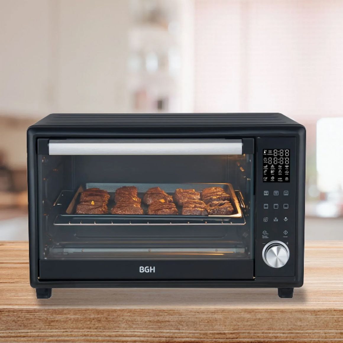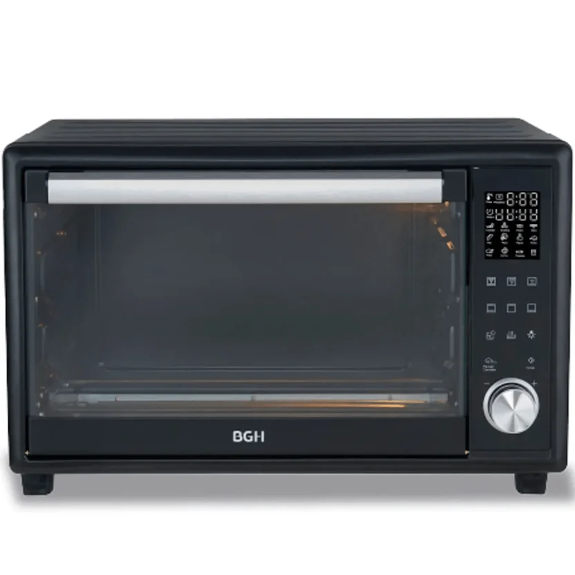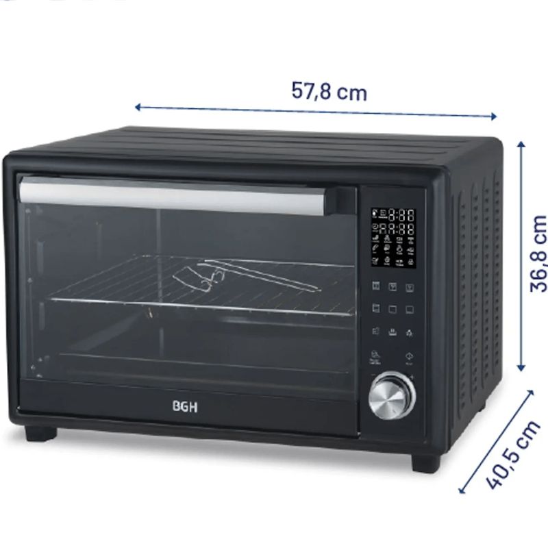 Este horno eléctrico BGH cuenta con funciones de hornear y calentar, ideal para tus necesidades culinarias. Dispone de un panel digital, termostato y luz interior para un control preciso. Además, incluye una bandeja y dos rejillas para facilitar la cocción. Con una potencia de 1800 W y un voltaje enchufable de 220V, este horno es una excelente opción para tu hogar.