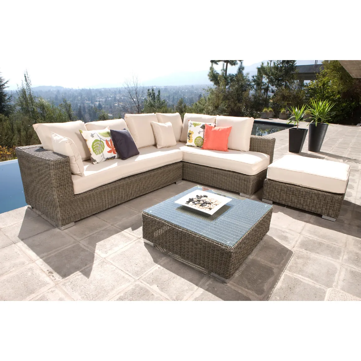 Este juego de living, de estilo industrial, está fabricado con poliratán y vidrio templado, materiales resistentes y duraderos. Incluye 2 sofás seccionales, una mesa de centro y un pouf, ofreciendo espacio para hasta 7 personas. Cuenta con apoyabrazos para mayor comodidad y su origen es China. Además, su armado es sencillo, con una dificultad baja.