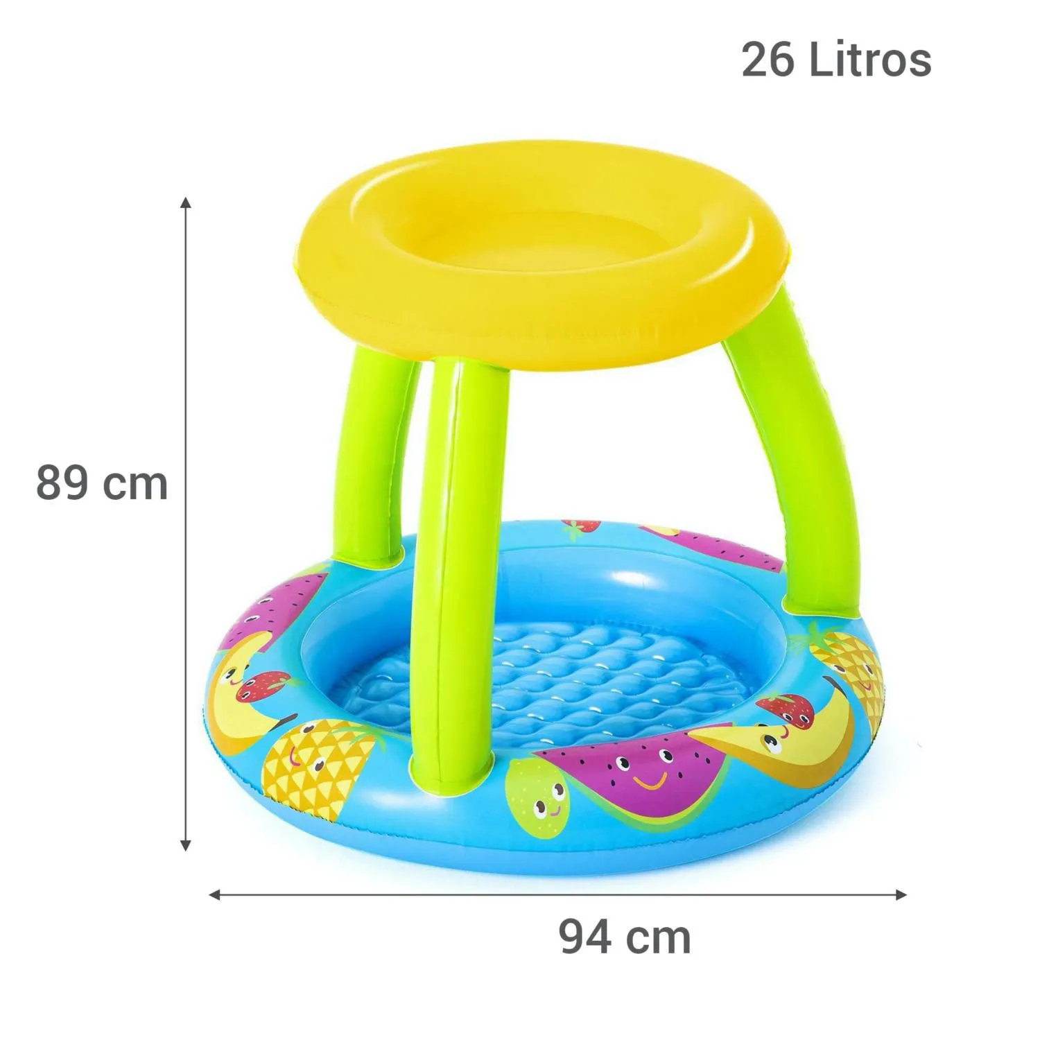 La Pileta inflable frutas techo 94 x 89 x 79 cm de Bestway es una pileta infantil que ofrece un espacio seguro y cómodo para que los niños jueguen. Con un tamaño de 94 cm de largo, 89 cm de ancho y 79 cm de alto, esta pileta es perfecta para jardines pequeños. Además, cuenta con un techo inflable que protege a los niños del sol, brindando mayor seguridad y comodidad. La pileta está fabricada con materiales de alta calidad y cuenta con una garantía de 3 meses, lo que te asegura una compra segura y confiable.