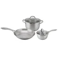 Este juego de cocina de 5 piezas está fabricado en acero inoxidable, con un elegante color plateado. Es apto para lavavajillas, lo que facilita su limpieza, y es compatible con cocinas de inducción. El juego incluye 1 olla, 1 cazo, 2 tapas y 1 sartén, ofreciendo una gran variedad de opciones para cocinar. Disfruta de la practicidad y durabilidad de este juego.
