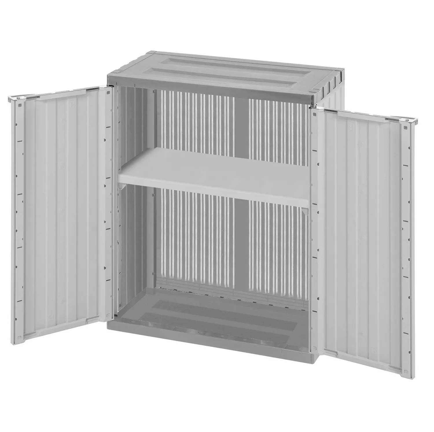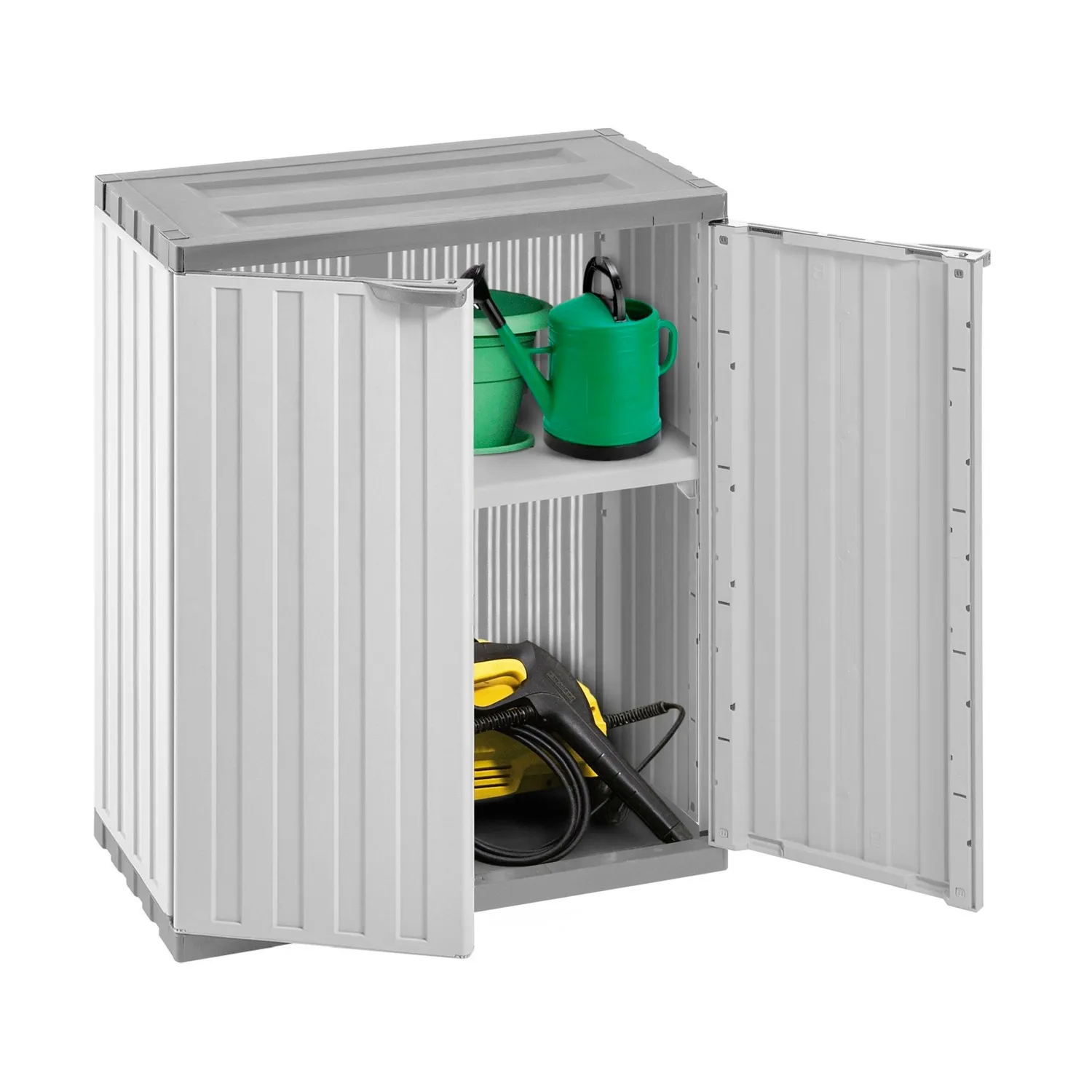 Armario mediano Starplastic, ideal para organizar tu jardín, patio o garaje. Con su diseño gris y práctico tamaño de 39 x 67 x 85 cm, este armario te ofrece el espacio perfecto para guardar herramientas, artículos de recreación y más. Su fácil armado y limpieza te permitirán tenerlo listo en minutos.