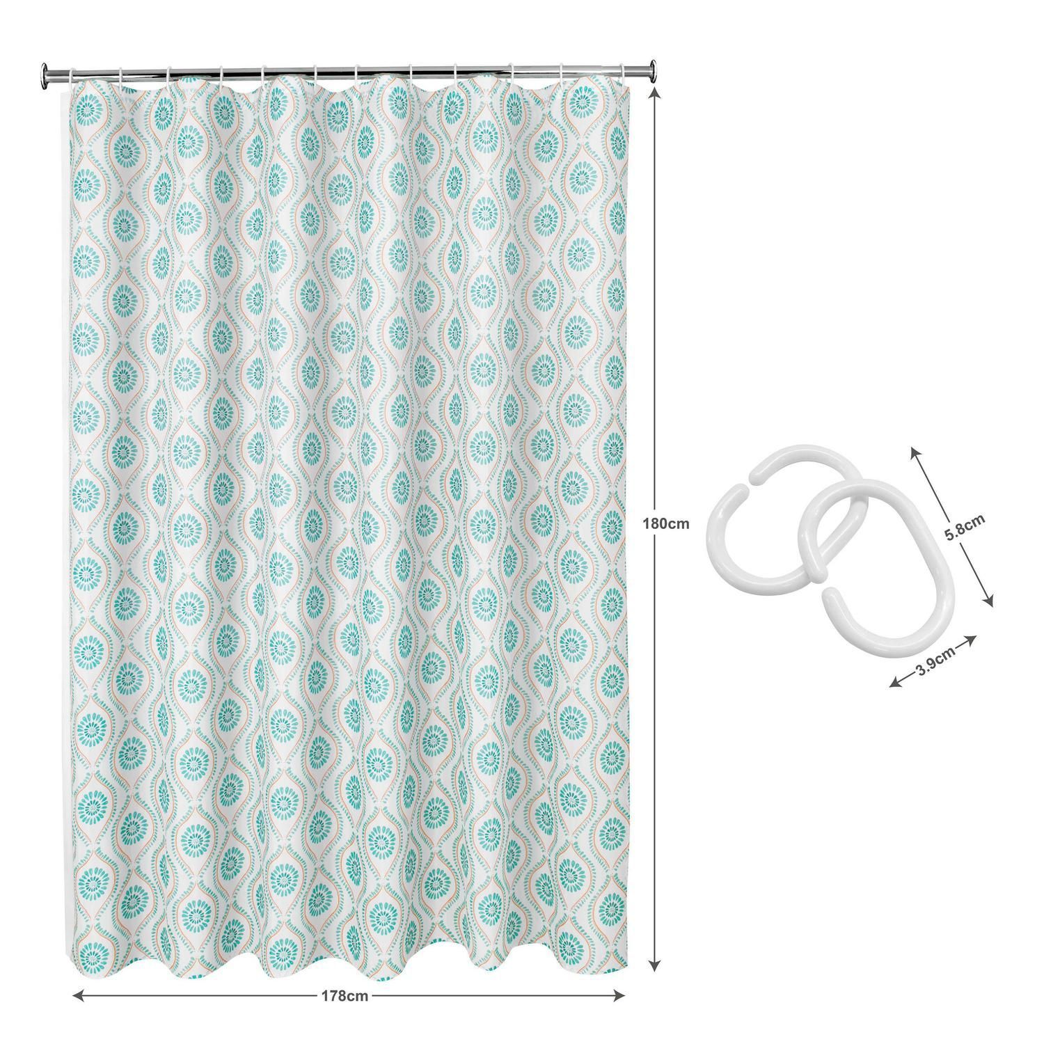 ¡Renová tu baño con el set de cortina y protector Rombo! Con sus 178 cm de ancho y 180 cm de alto, este set multicolor de Just Home Collection le dará un toque fresco y moderno a tu espacio. Incluye una cortina, un protector y 12 ganchos, todo lo que necesitas para transformar tu baño.