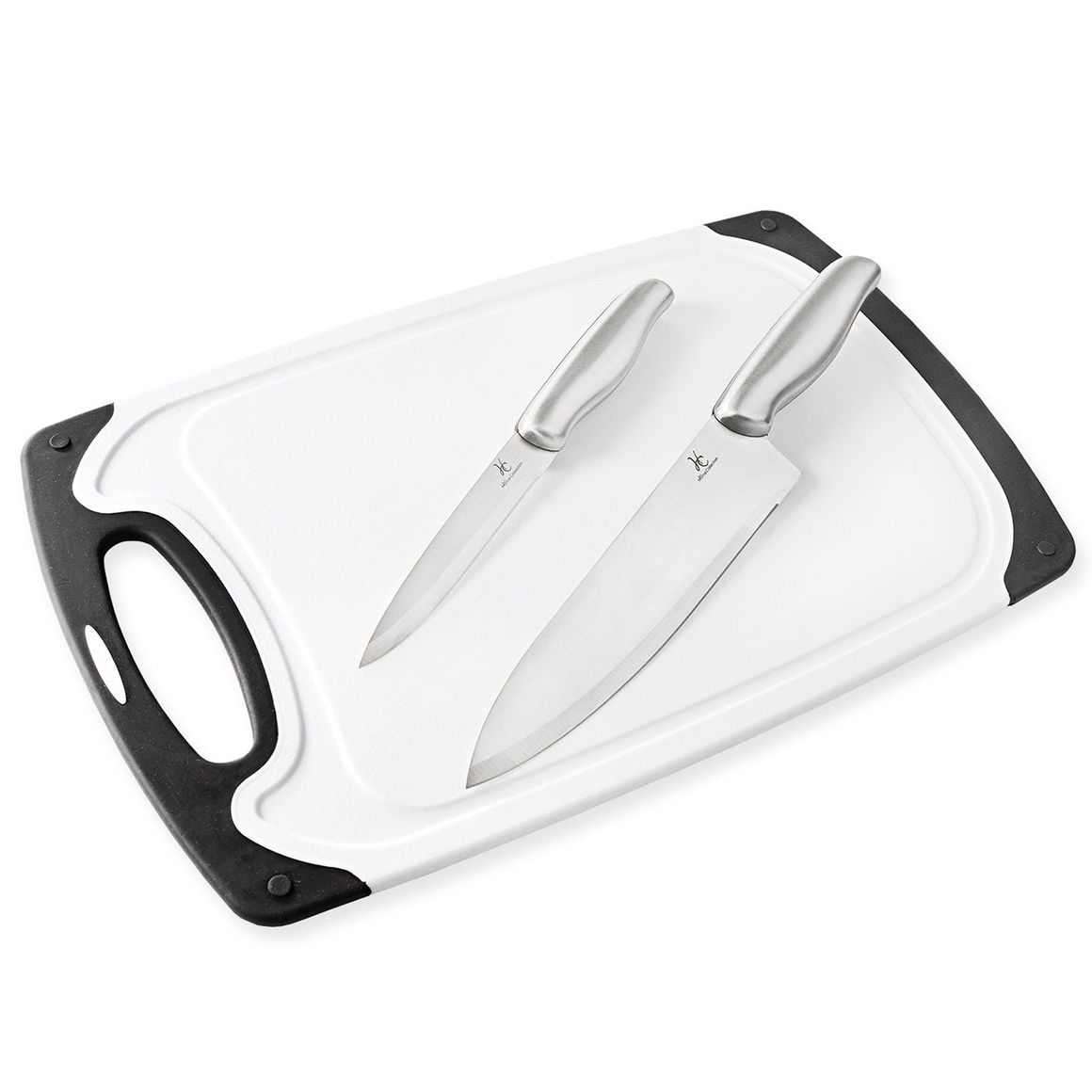 Set de tabla de picar y 2 cuchillos de acero inoxidable