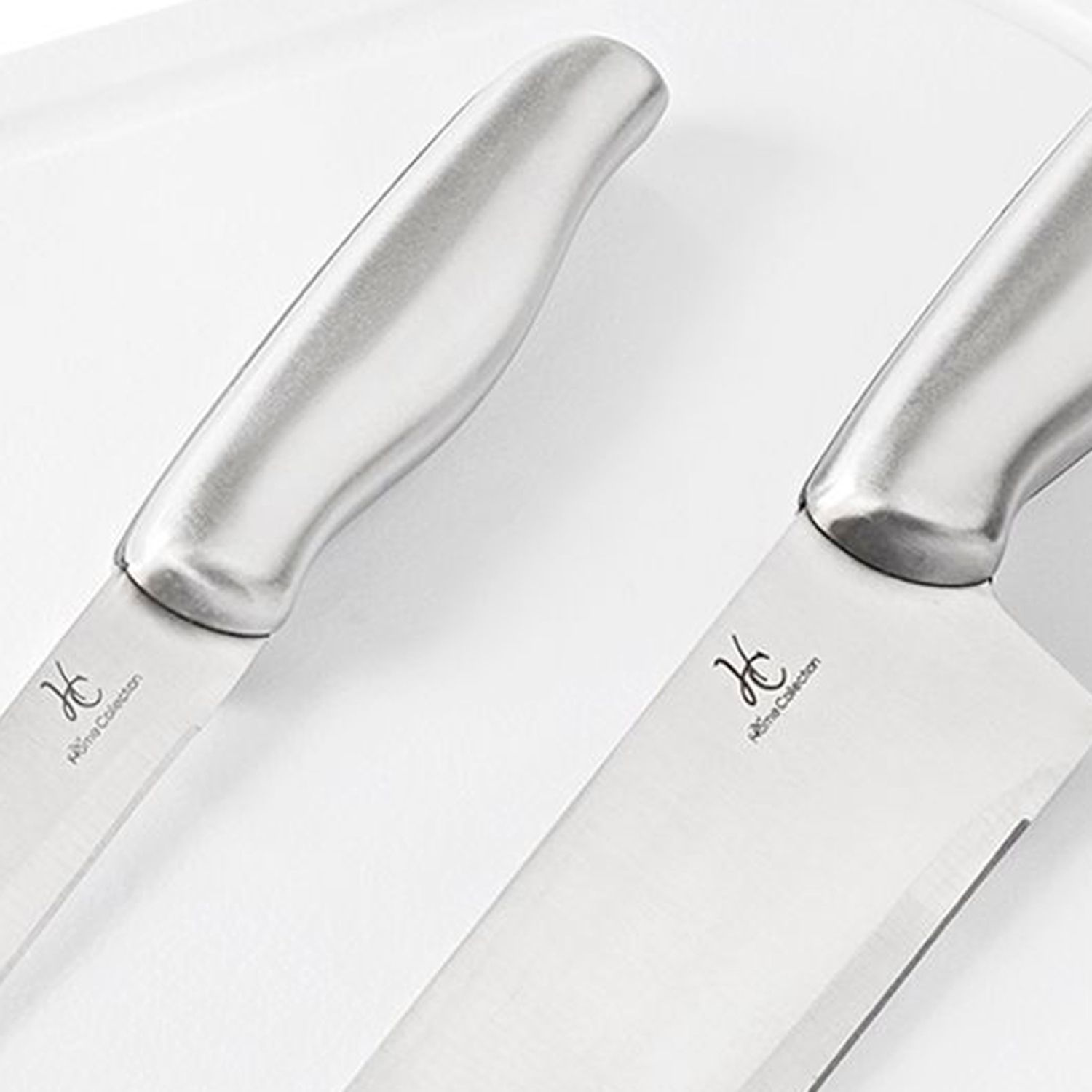 Dale a tu cocina un toque de estilo industrial con este set de tabla para picar y dos cuchillos de acero inoxidable. El set incluye dos cuchillos de acero inoxidable con mangos de diseño elegante y una tabla de picar blanca con detalles negros, ideal para preparar tus comidas con comodidad y estilo. ¡No esperes más para renovar tu cocina!