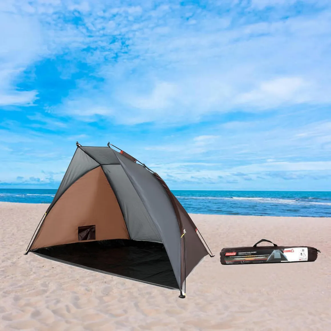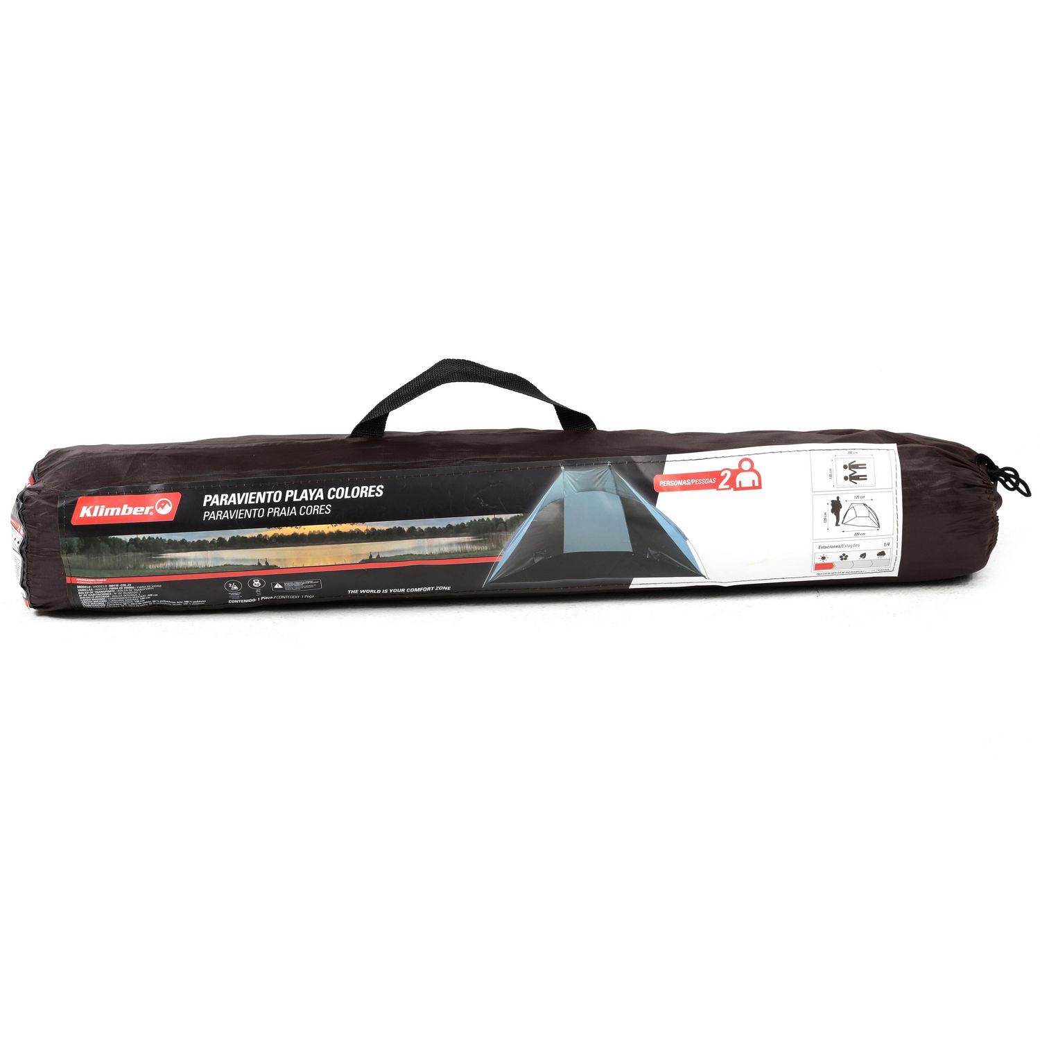 ¡Preparate para disfrutar del sol y la playa con el paraviento Klimber! Con sus dimensiones de 120 cm de alto, 120 cm de ancho y 220 cm de largo, este paraviento es perfecto para crear un espacio personal y resguardarte del viento mientras te relajas. ¡Ideal para dos personas!