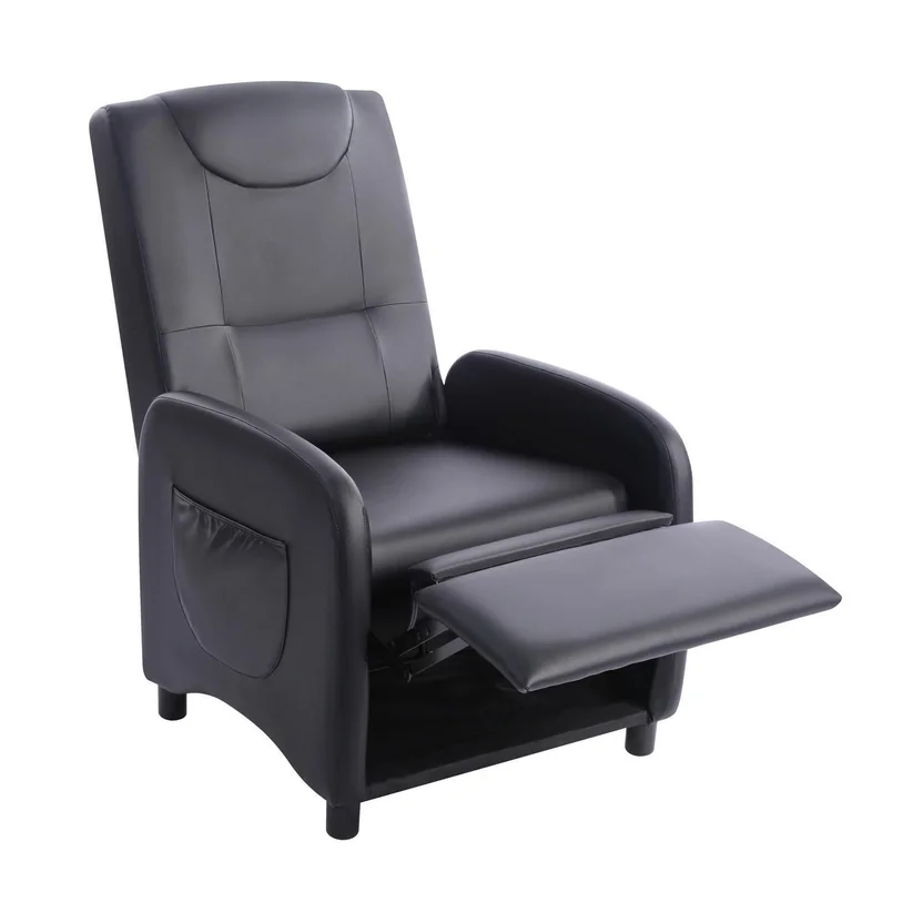 Relájate y disfruta de la comodidad que te ofrece el Sillón reclinable Brio negro. Su diseño vintage y tapizado en poliuretano negro le dan un toque elegante a tu hogar. Con su función reclinable, podrás descansar y disfrutar de tus momentos de ocio con la máxima comodidad. ¡No te pierdas la oportunidad de tener este sillón en tu casa!