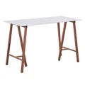 El escritorio Salanoa tiene 120 cm de ancho y 60 cm de profundidad, ofreciendo un amplio espacio de trabajo. Su altura de 76 cm es perfecta para una postura ergonómica. La cubierta de vidrio blanco le da un toque de modernidad, mientras que la estructura de acero asegura su estabilidad y durabilidad. El escritorio se entrega en un paquete de 126 cm de largo, 62 cm de ancho y 11 cm de alto, con un peso de 21.59 kg.