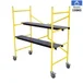 Andamio de acero de 128 cm de alto, ¡ideal para tus proyectos de bricolaje! Con dos niveles y ruedas giratorias con bloqueo, este andamio te ofrece estabilidad y movilidad. Su estructura de acero resistente soporta hasta 136 kg, y su color amarillo lo hace visible y atractivo. Fácil de mover de un lugar a otro, es perfecto para pintar, reparar, empapelar o colgar paneles de yeso, tanto en interiores como en exteriores.