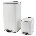 Set de 2 cestos de basura a pedal 5 y 30 L de metal blanco