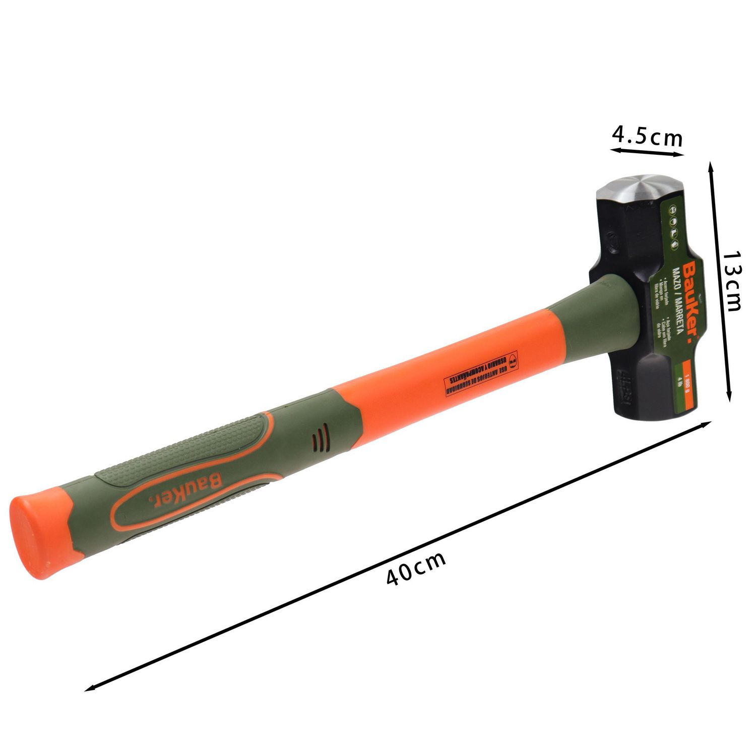 Este mazo Bauker, con una configuración de cabeza Strike, es ideal para trabajos pesados. Su mango de fibra de vidrio proporciona un agarre firme y cómodo, mientras que su cabeza de acero garantiza durabilidad y resistencia. Con un largo de 40 cm y un ancho de 13 cm, este mazo es fácil de manejar y perfecto para una variedad de tareas.