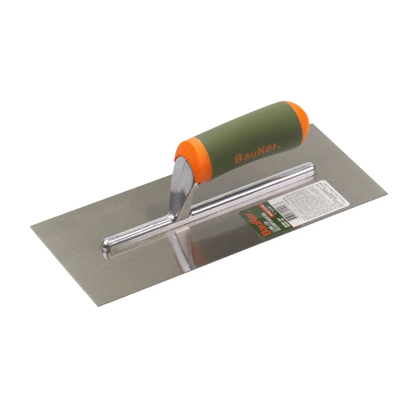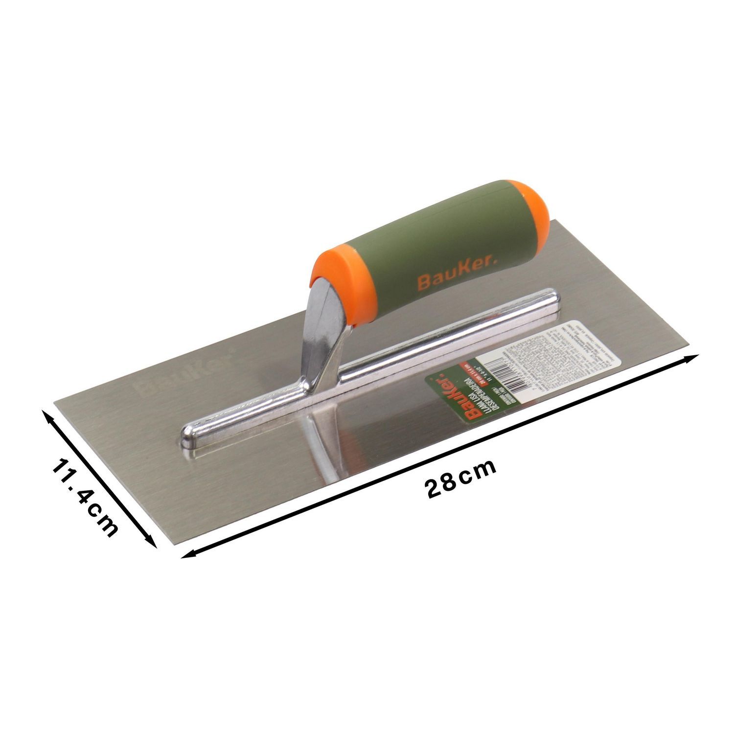 Esta llana Bauker, con origen en China, está diseñada para la aplicación en concreto. Sus dimensiones son de 28 cm de largo y 11.5 cm de ancho, con un alto de 8 cm. El color del producto es verde y naranjo. Su peso empacado es de 0.48 kg.