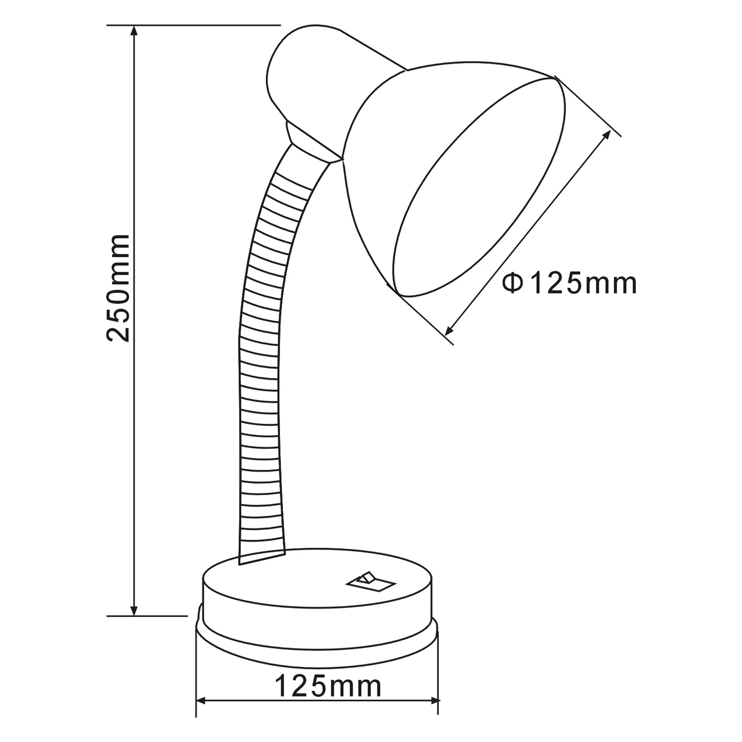 Fabricada en metal con un acabado brillante, esta lámpara de escritorio tiene una altura de 35 cm y un ancho de 13 cm. Su cable de 160 cm de largo te brinda flexibilidad para ubicarla donde mejor te convenga. Funciona con una rosca E27 y soporta una potencia máxima de 30 W. El encendido es sencillo gracias a su base interruptor. Cuenta con la certificación TÜV RA 4182361 E (R1), asegurando su calidad y seguridad.