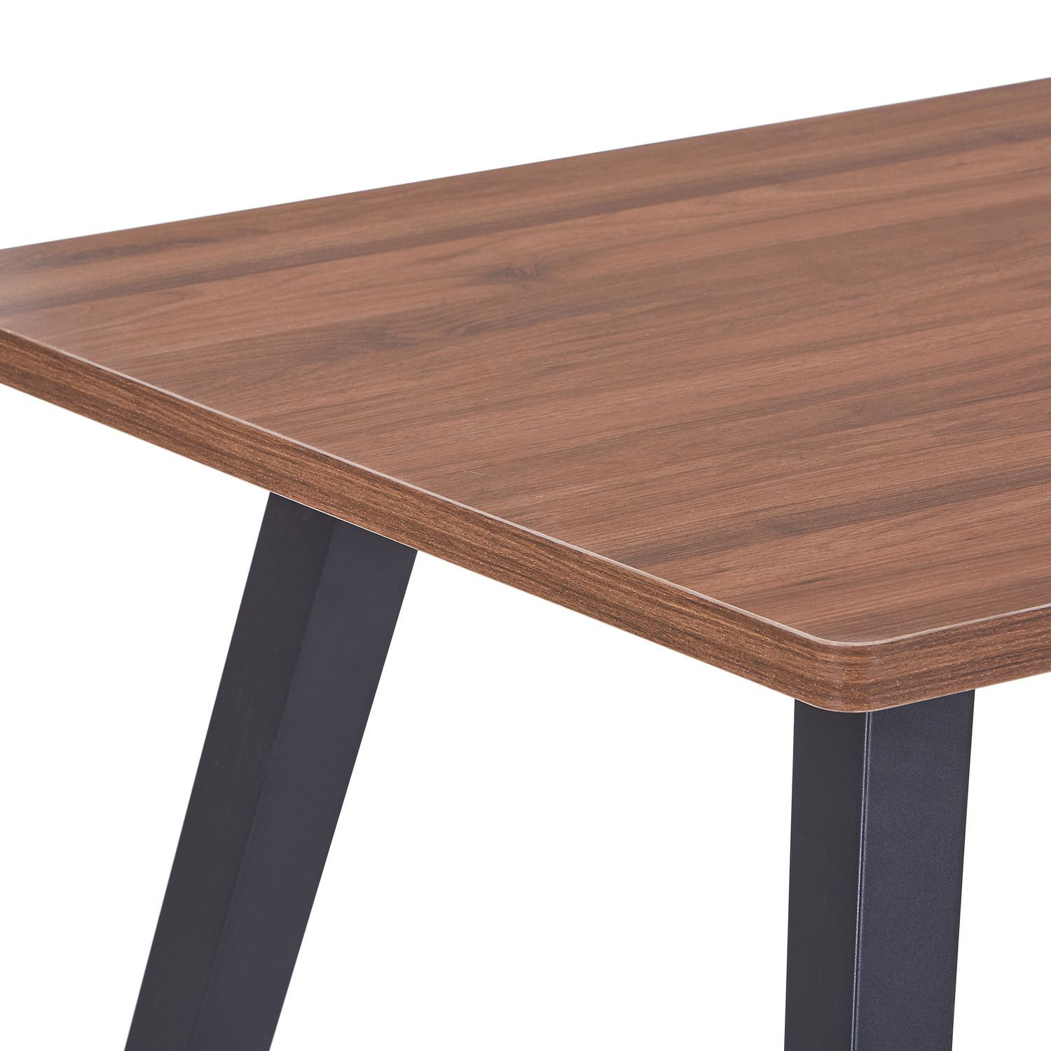 Este juego de comedor Aleria está fabricado con materiales de alta calidad. La mesa cuenta con una cubierta de MDF y una estructura de metal, mientras que las sillas tienen estructura y tapiz de metal y poliéster respectivamente. Las dimensiones de la mesa son de 160x90x76cm, y las sillas miden 50x56x89cm. Este juego de comedor es ideal para 4 personas.