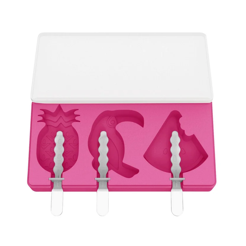 ¡Refrescate con estilo este verano! Con el molde para helado 3 en 1, podrás crear deliciosos helados caseros con formas divertidas. Este molde de silicona te permite hacer helados con diseños únicos, como una piña, un tucán y una porción de sandía. ¡Sorprende a todos con tus creaciones!