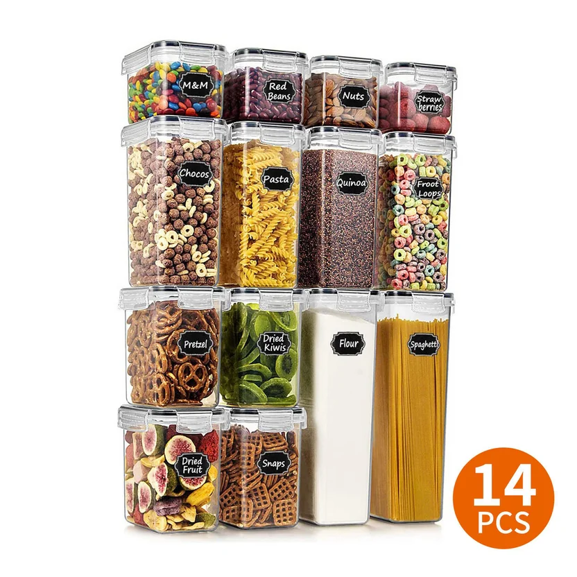 Este set incluye 28 piezas (14 contenedores y 14 tapas) de plástico, con un diseño pensado para facilitar su apilamiento. La variedad de tamaños (0.8 ml, 1.4 L, 2 L y 2.8 L) te permitirá guardar diferentes tipos de alimentos, desde especias hasta pastas. El set tiene unas dimensiones de 29.5 x 19.5 x 30.5 cm y cuenta con una garantía de 6 meses. Originarios de China, estos contenedores son una solución práctica y estética para tu hogar.