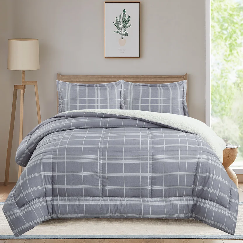 Abrigate con el Acolchado Sherpa 2 plazas gris de Just Home Collection. Su diseño a cuadros grises y blancos le dará un toque de elegancia a tu dormitorio, mientras que su relleno de poliéster y suave textura sherpa te brindarán la calidez perfecta para noches de invierno. ¡Incluye dos fundas de almohadas para una comodidad completa!