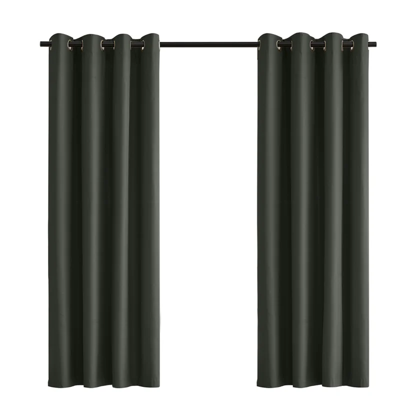 Estas cortinas blackout de la colección Just Home Collection vienen en un empaque de 24 cm de ancho, 34 cm de largo y 4 cm de alto, con un peso de 0.877 kg. El sistema de colgado es con ojales, y su terminación es con pasador. Son ideales para living o dormitorio, ofreciendo un ambiente oscuro y tranquilo. Cada paquete incluye una unidad.