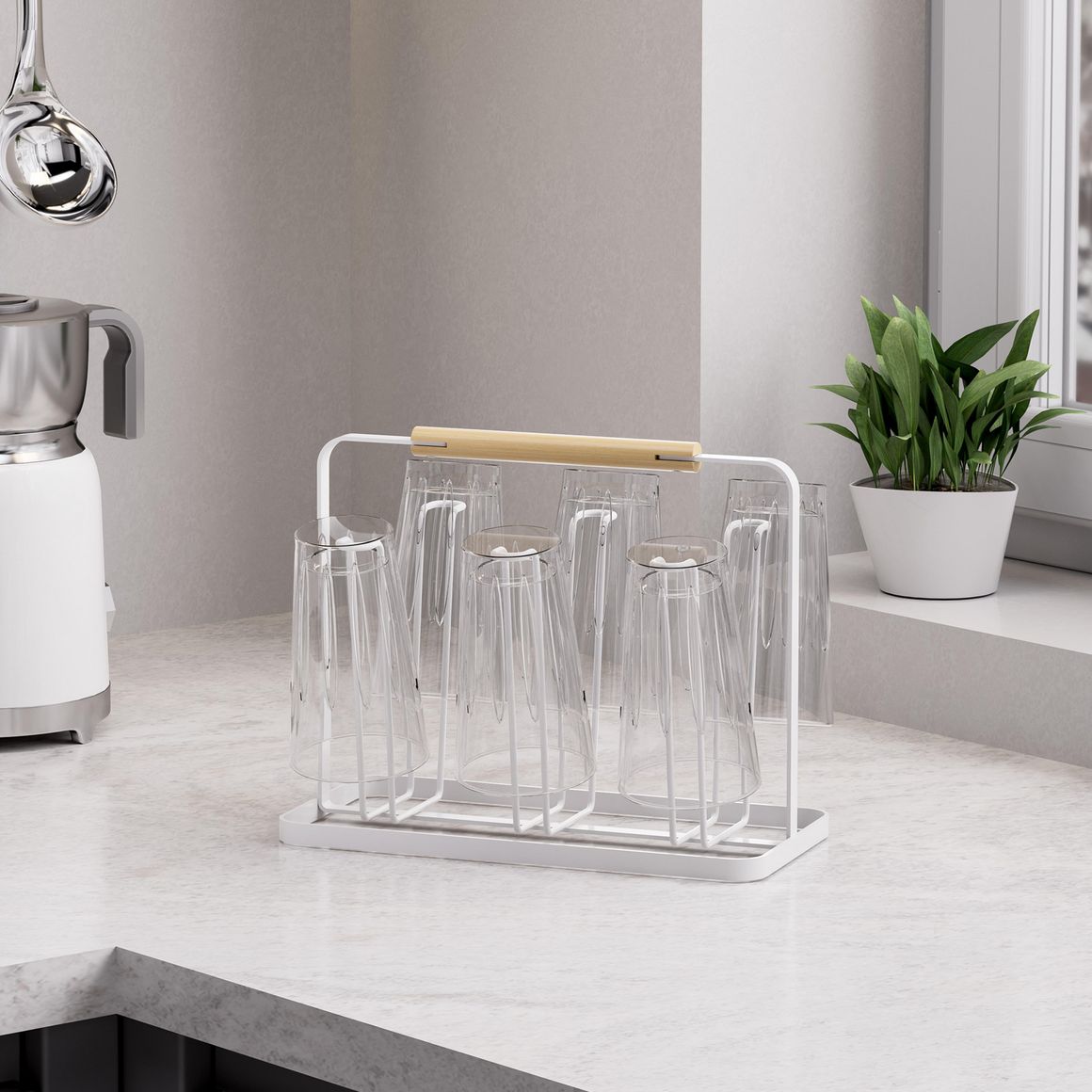 ¡Organizá tus vasos con estilo! Este organizador de acero inoxidable Just Home Collection, con un elegante color blanco, es perfecto para mantener tus vasos ordenados y a mano. Con capacidad para 6 vasos, este organizador es ideal para cualquier cocina.