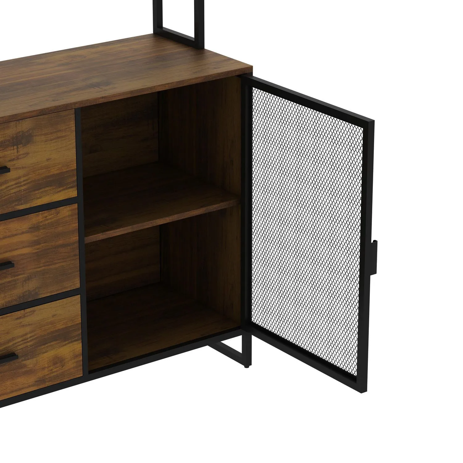 Este mueble despensa cuenta con 3 cajones y 3 repisas, ideal para mantener todo en orden. Su estructura es de metal y melamina, lo que garantiza durabilidad y resistencia. Incluye fijaciones para facilitar el armado, que es de baja dificultad. Sus puertas son de 15 mm de espesor y las bisagras son de acero inoxidable, asegurando un cierre normal y un funcionamiento óptimo.