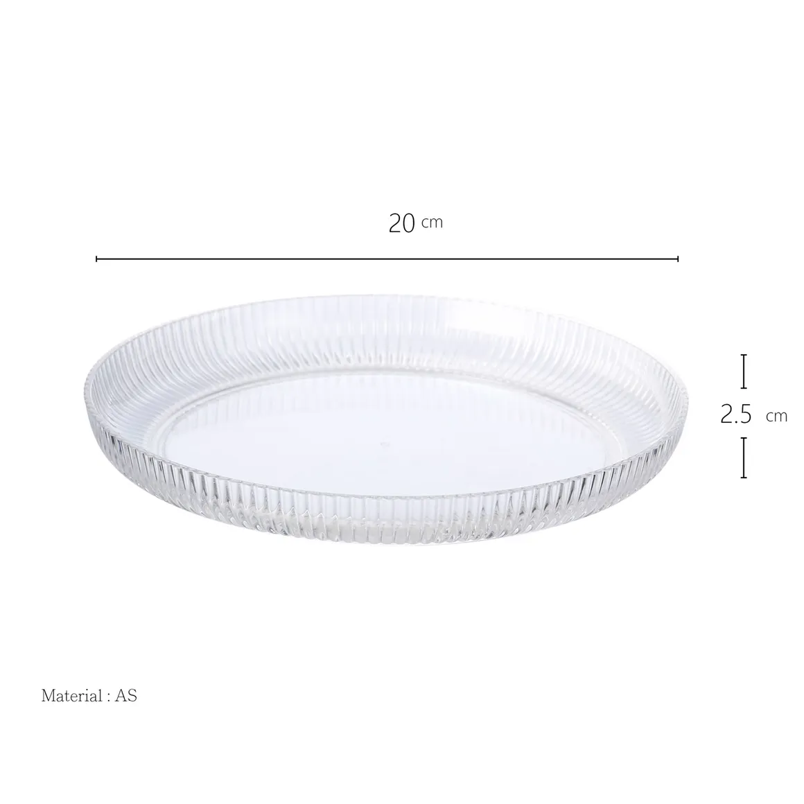 Este plato de fondo, fabricado en plástico, es apto para uso diario. Con un diámetro de 20 cm y un estilo vintage, este plato es una pieza única. Incluye una unidad y es de color transparente, lo que lo hace versátil para combinar con cualquier decoración. No es apto para lavavajillas ni microondas.