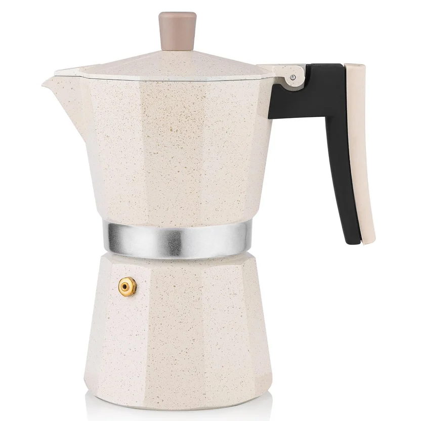 Complementa tu Cafetera manual Moka 6 tazas de aluminio beige