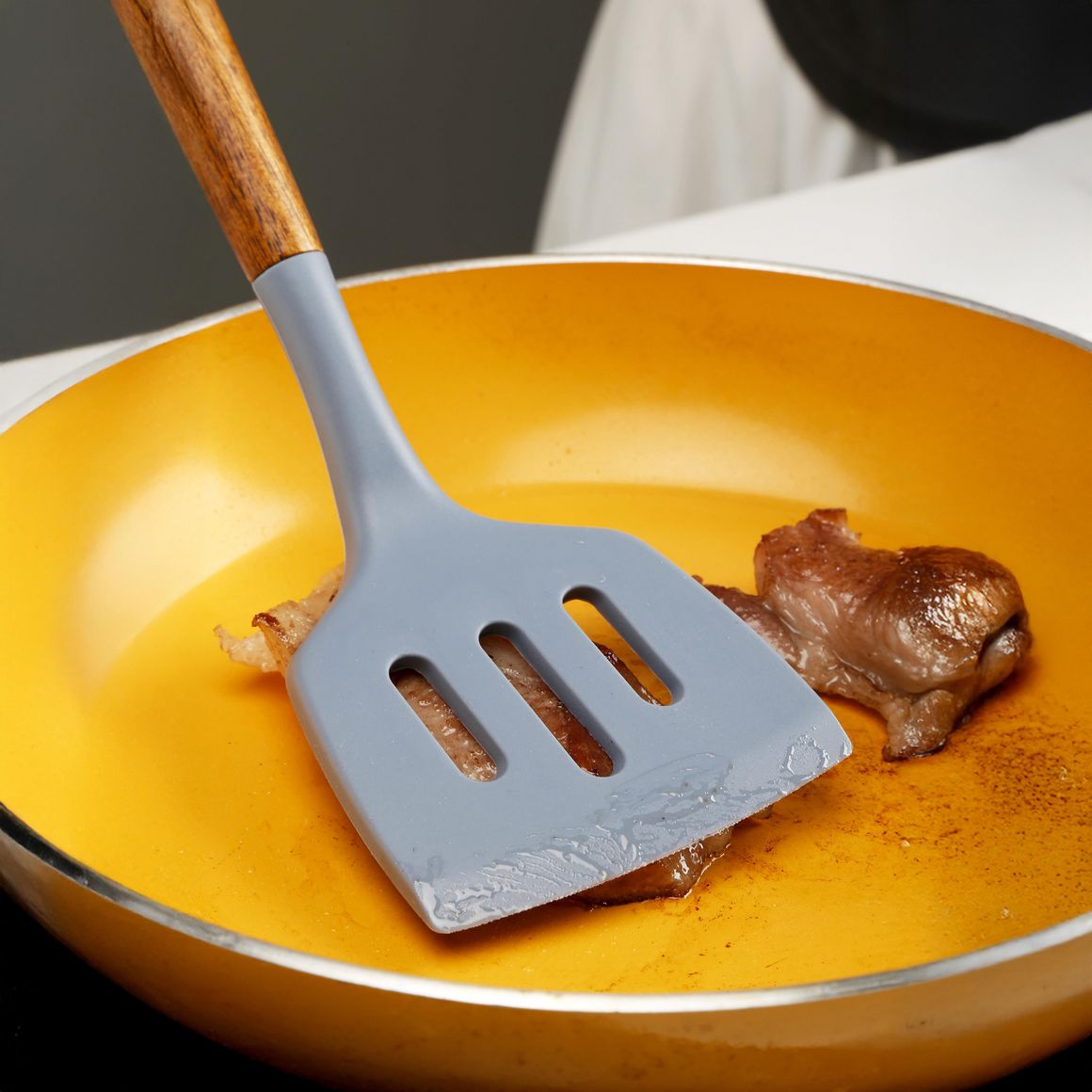 Esta espátula es ideal para tus necesidades culinarias, fabricada con silicona y madera. Con una longitud de 32.3 cm, es perfecta para manipular alimentos en sartenes y ollas. Incluye una unidad y cuenta con una garantía de 6 meses.