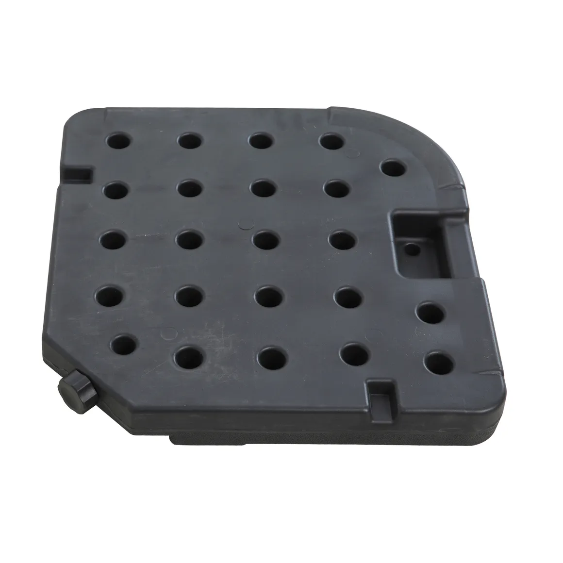 Esta base para sombrilla está fabricada con HDPE, un material resistente y duradero. Sus dimensiones son de 100 cm de largo y 100 cm de ancho, con una altura de 7.5 cm. El peso del producto es de 7.2 kg, lo que asegura una buena estabilidad. El origen del producto es China.
