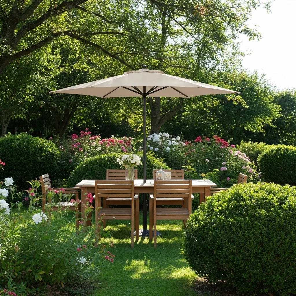 Para completar tu espacio exterior, te recomendamos explorar las opciones de sombrillas y bases, mesas de exterior, y sillas y sillones de exterior. Las sombrillas y bases te permitirán asegurar y complementar tu sombrilla, mientras que las mesas y sillas te brindarán el mobiliario perfecto para disfrutar de tus momentos al aire libre.