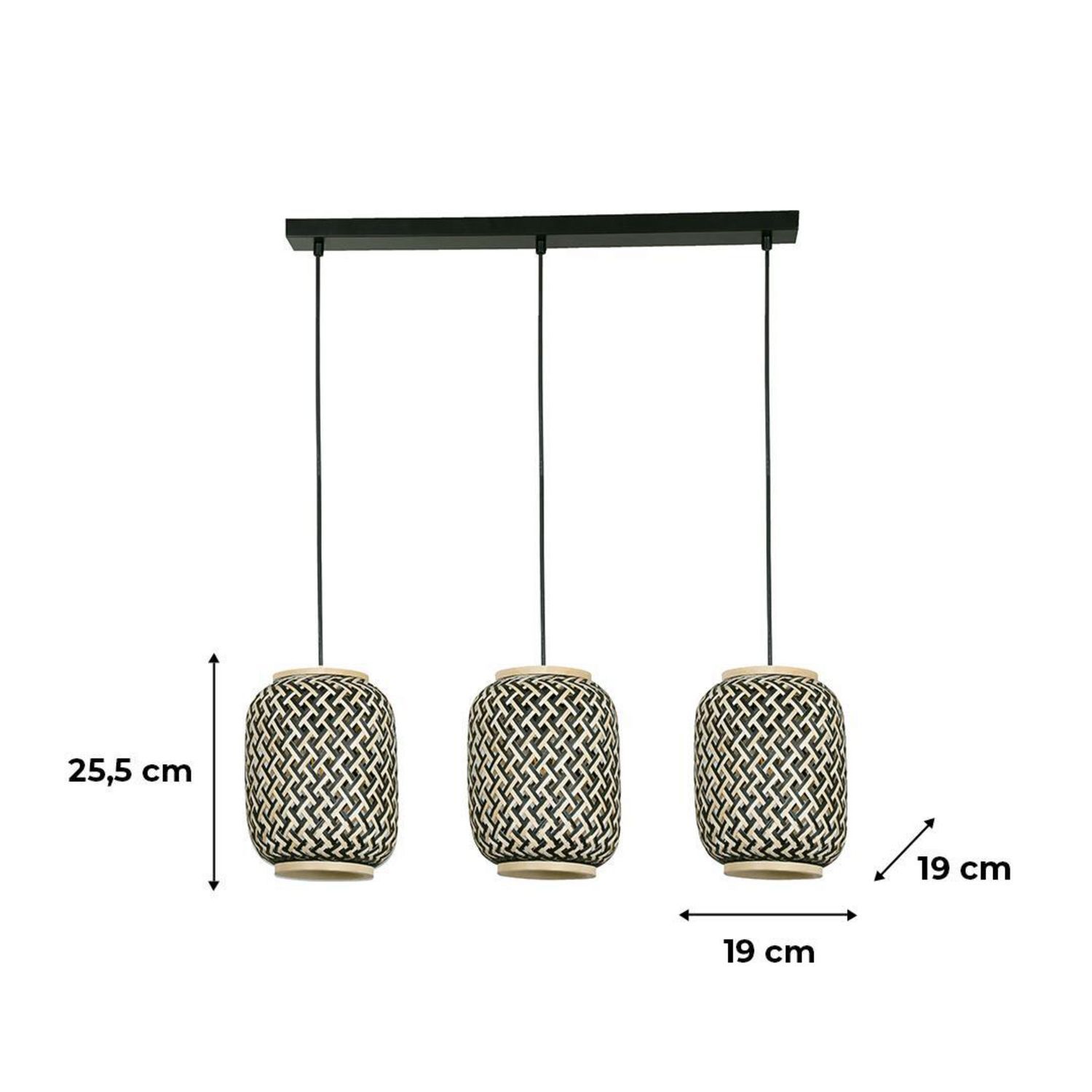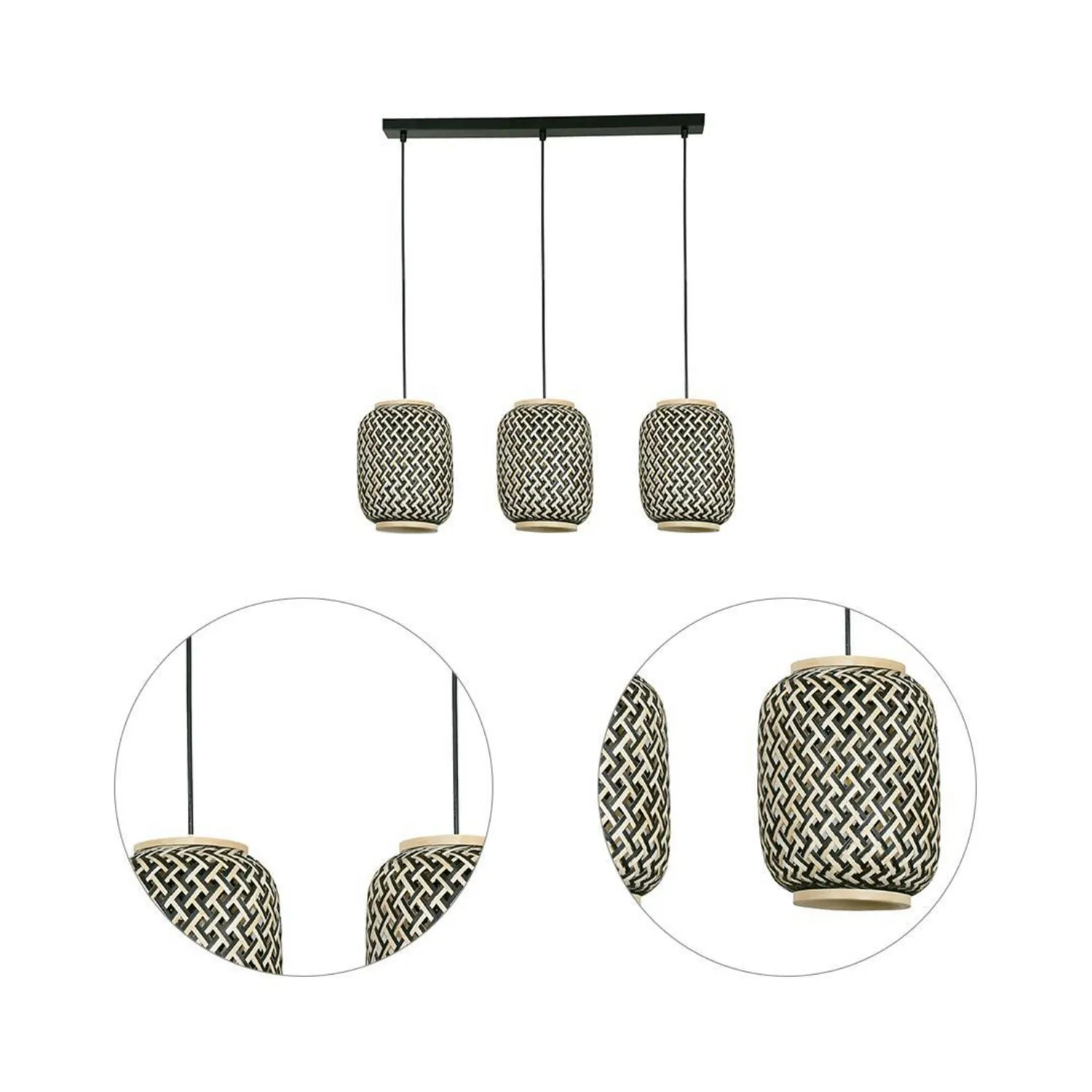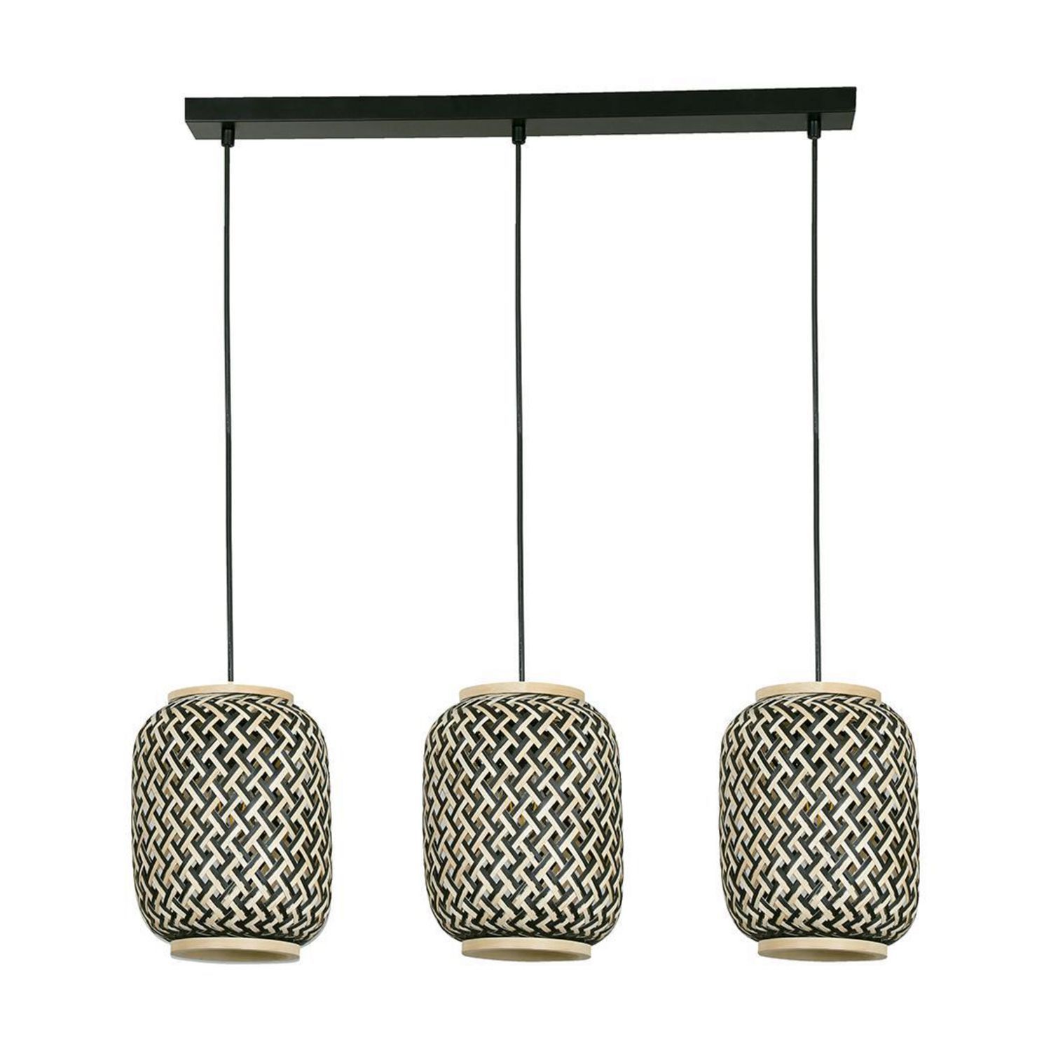 Lámpara de techo colgante Nala 3 luces E27 natural y negro