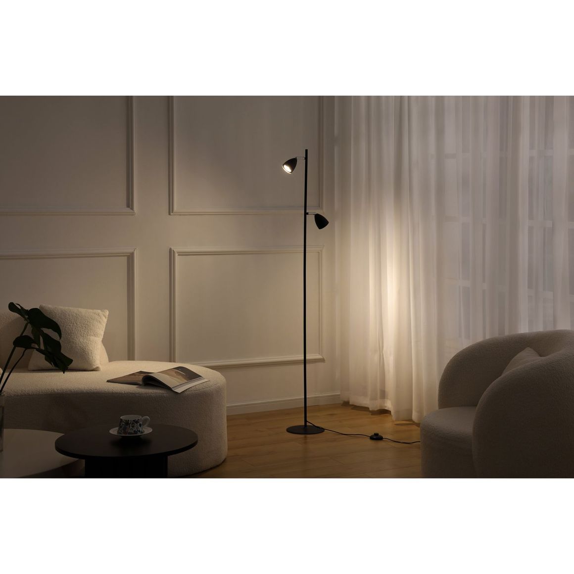 Iluminá tus espacios con la Lámpara de pie Trier, un diseño industrial que combina funcionalidad y estilo. Con dos luces GU10 en un elegante acabado mate negro, esta lámpara es perfecta para crear ambientes acogedores y modernos.