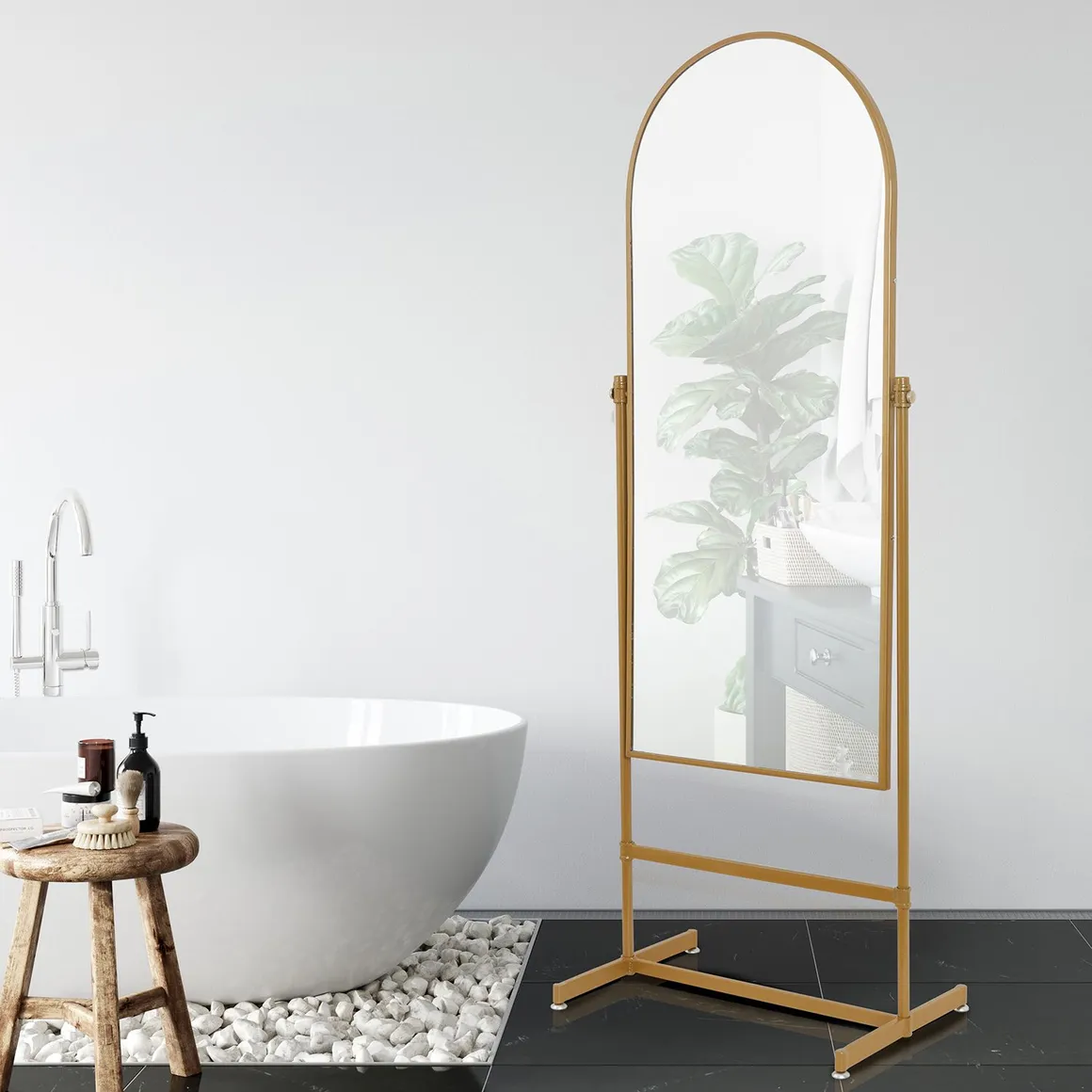 ¡Dale un toque de glamour a tu espacio con el Espejo redondo Vanity dorado! Con su estilo Vintage y su marco dorado, este espejo de 60 x 160 cm es perfecto para darle un toque sofisticado a cualquier ambiente. ¡Imagina la elegancia que aportará a tu dormitorio, sala de estar, living, oficina o estudio!