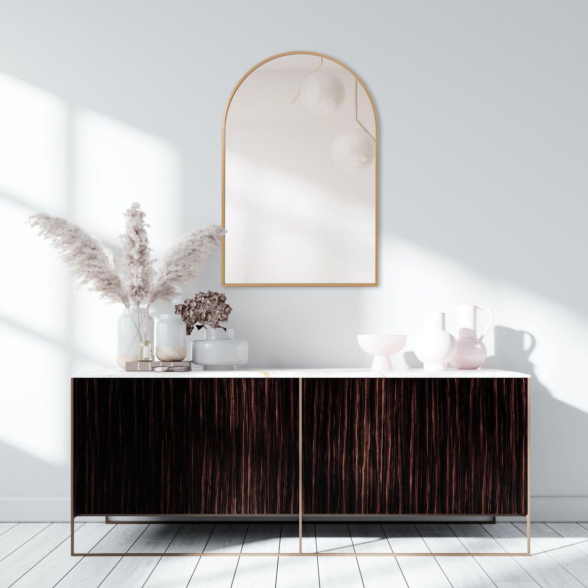 Dale un toque de elegancia a tu hogar con el Espejo redondo Arch dorado de 60 x 90 cm. Su diseño vintage y su marco dorado lo convierten en el complemento perfecto para cualquier espacio, desde el dormitorio hasta la sala de estar. ¡Añade un toque de sofisticación a tu decoración!