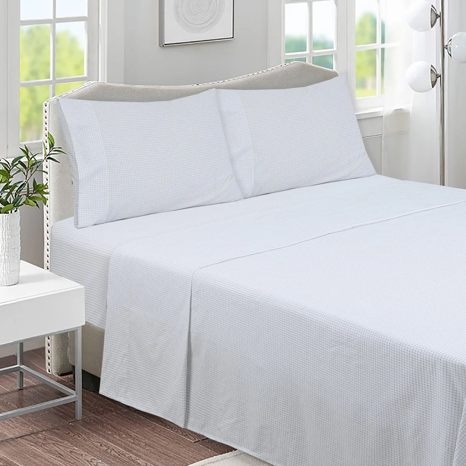 Juego de sábana 1 plaza y media 144 hilos cuadro blanco