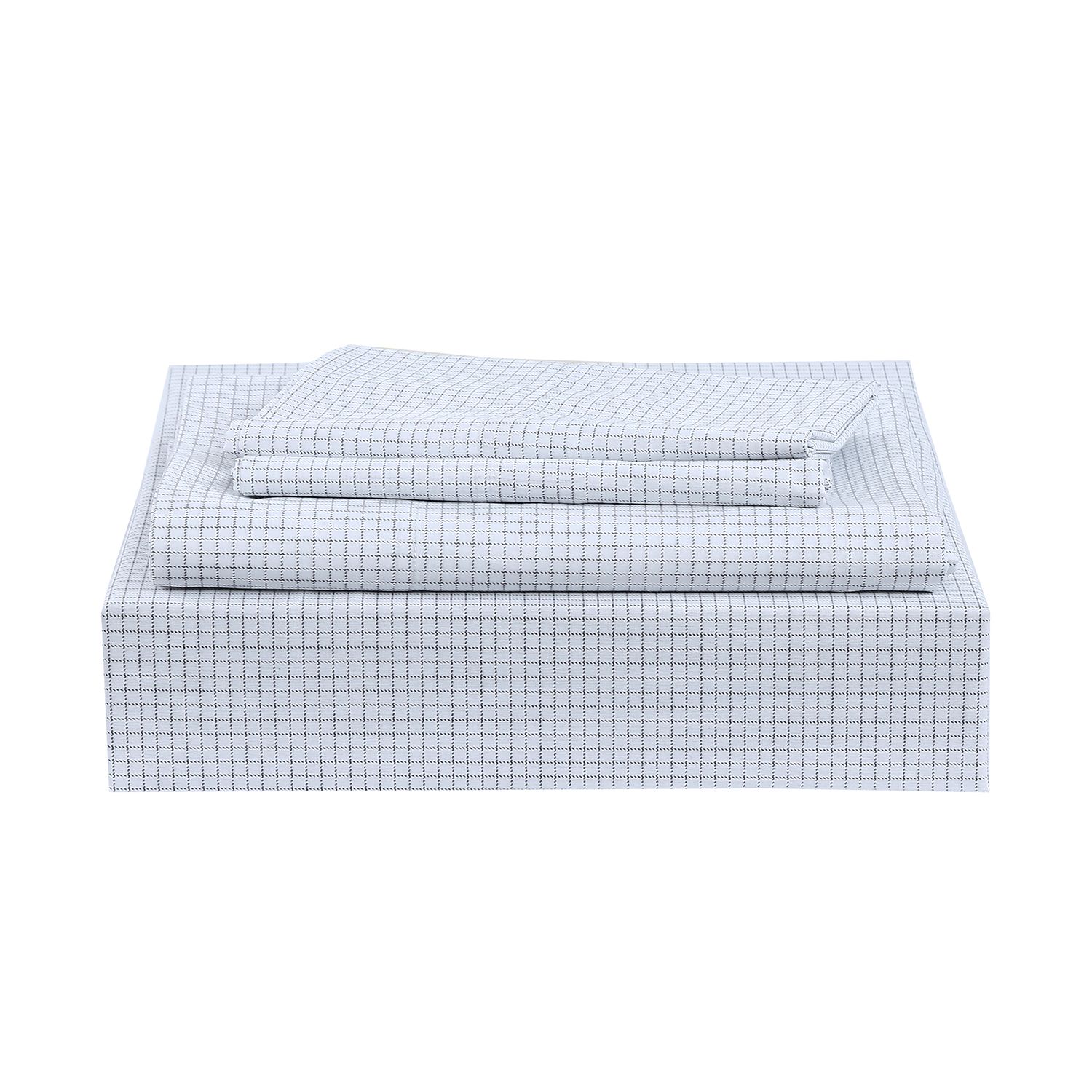 Este juego de sábanas incluye 2 sábanas y 2 fundas, ideal para camas Queen. Están hechas de una combinación de poliéster y algodón, con una composición de 50% algodón y 50% poliéster. El modelo es de cuadro y el color es blanco y gris. El origen del producto es China.
