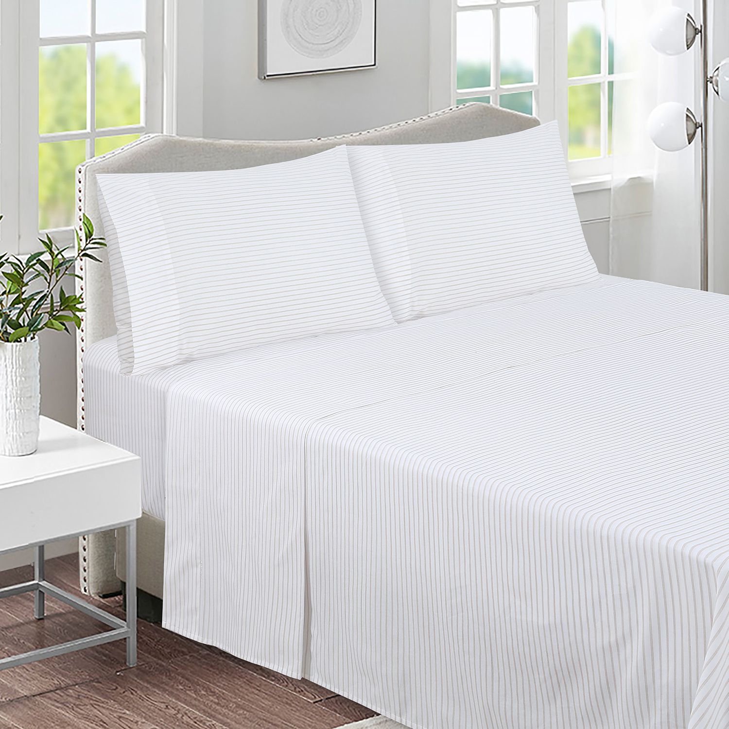 ¡Renová tu dormitorio con el Juego de Sábana Queen 144 hilos stripe blanco! Disfrutá de la suavidad y el confort que te brindan estas sábanas, perfectas para crear un ambiente acogedor y moderno en tu cama.
