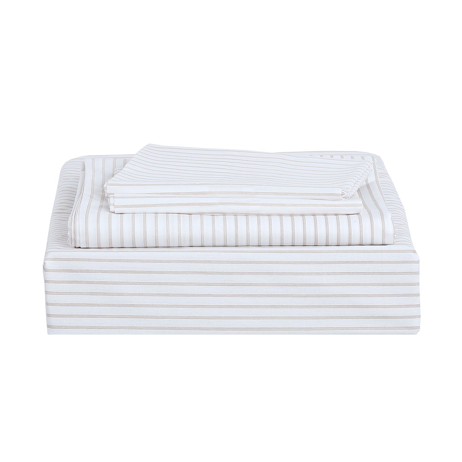 Este juego de sábanas incluye 2 sábanas y 2 fundas, ideal para camas Queen. Están hechas de una combinación de 50% algodón y 50% poliéster, lo que garantiza durabilidad y facilidad de cuidado. El modelo Stripe, con su diseño elegante, le dará un toque de estilo a tu habitación. El origen del producto es China.