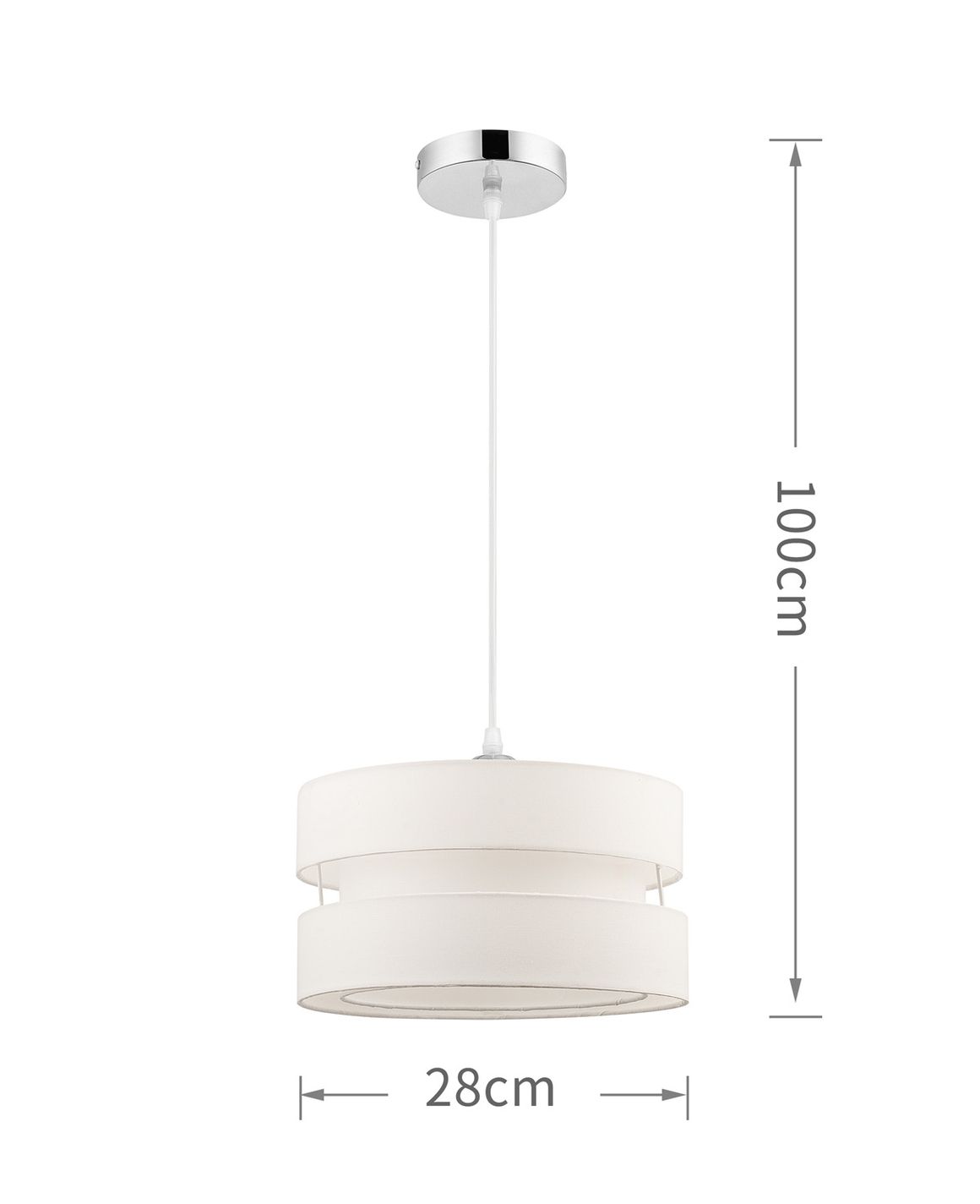 Iluminá tus espacios con la Lámpara de techo colgante New Tela. Con su diseño clásico y elegante, esta lámpara colgante de tela beige, con una altura de 100 cm y un diámetro de 28 cm, es perfecta para crear un ambiente acogedor y sofisticado en cualquier habitación. Su fácil instalación y uso interior la convierten en la opción ideal para renovar la iluminación de tu hogar.