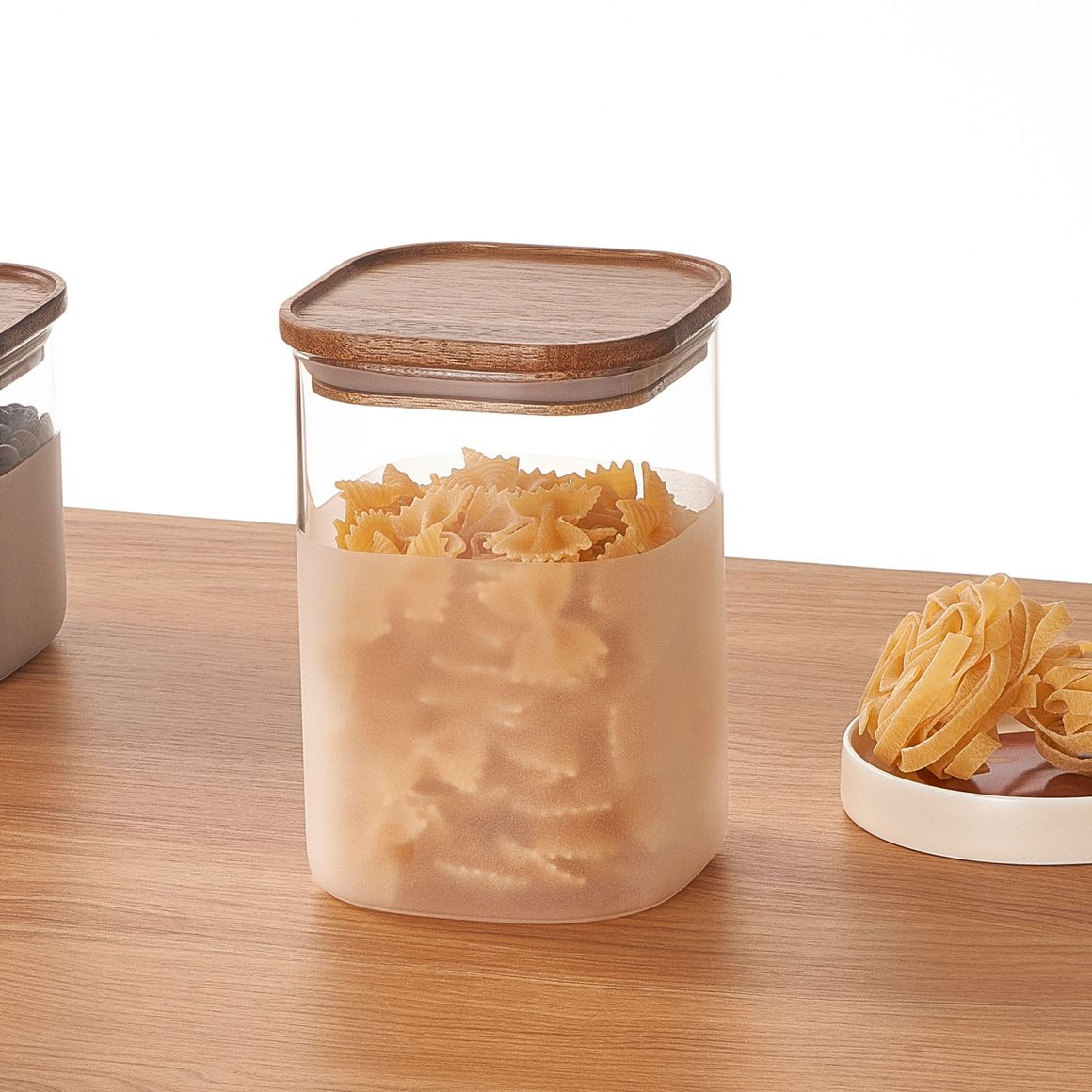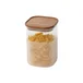 ¡Dale un toque de elegancia y organización a tu cocina con el Frasco de vidrio con tapa de madera de 1 L! Este frasco es perfecto para almacenar tus alimentos secos, como pastas, legumbres o cereales, manteniendo su frescura y sabor. Su diseño natural y moderno, con una tapa de madera, lo convierte en un objeto decorativo que realzará cualquier espacio.